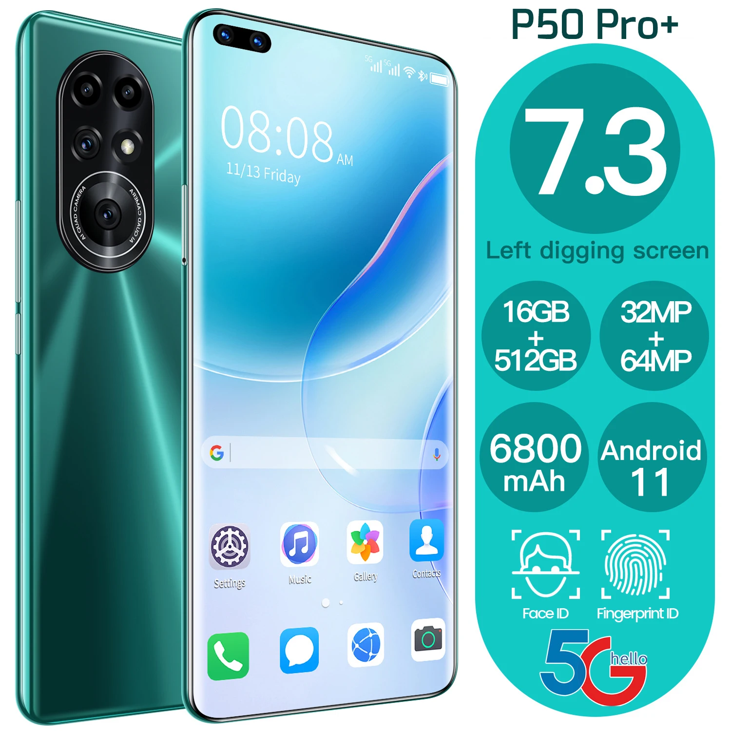 Смартфон глобальная версия P50 Pro +, 7,3 дюйма, 6800 мАч, 16 + 512...