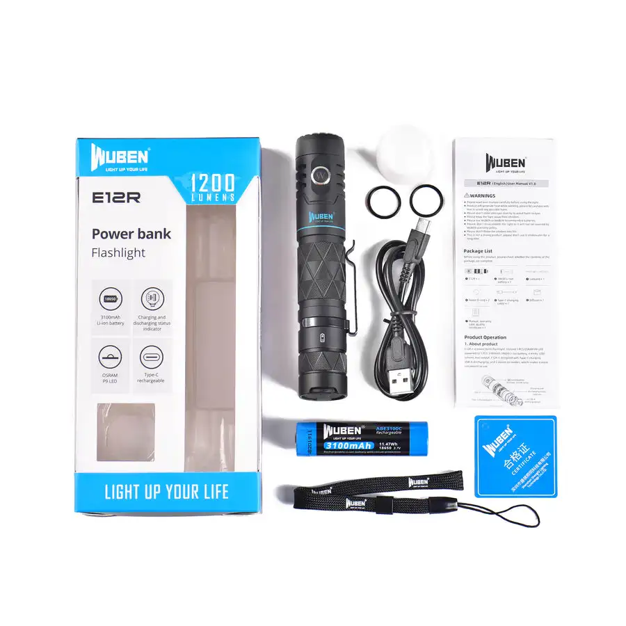 Высокомощный светодиодный фонарик WUBEN E12R, 1200 люмен, Type-C, USB, перезаряжаемый, 3100 мАч, 18650, литий-ионный аккумулятор, внешний аккумулятор, фонарик для повседневного использования