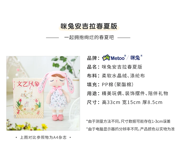 Название бренда: MetooНомер модели: 1743-1Название продукта:Плюш и набитая модная коллекция AngelaОсновной материал:Плюш и полиэстерНаполнитель: 100% полиэфирное волокноРазмер: H33 * W16 * d8.5смВозраст: 0 + возраст