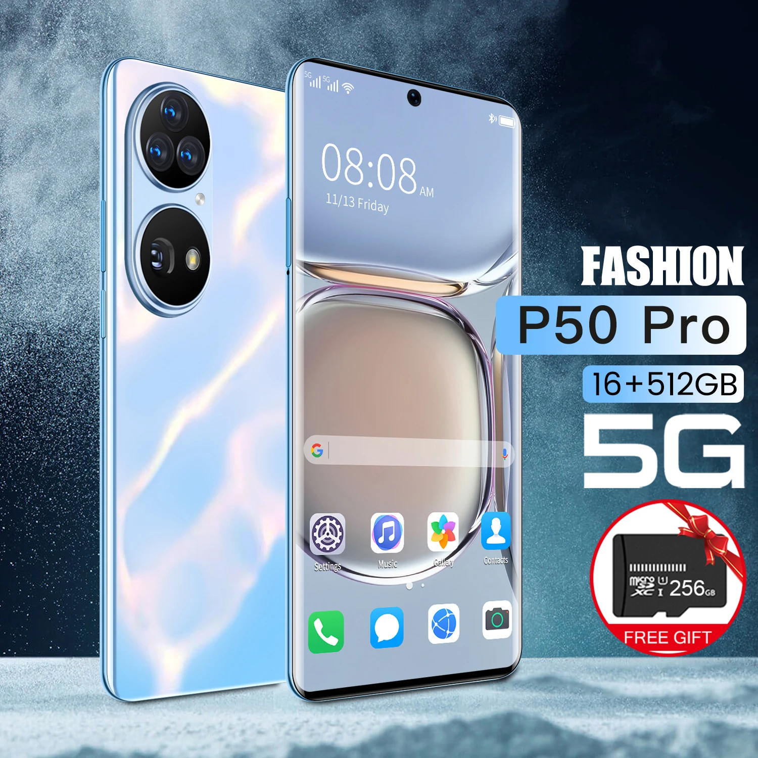 Новейший Смартфон Hauwei P50 Pro, 7,3 дюйма, 8000 мАч, 512G, 32 Мп ...