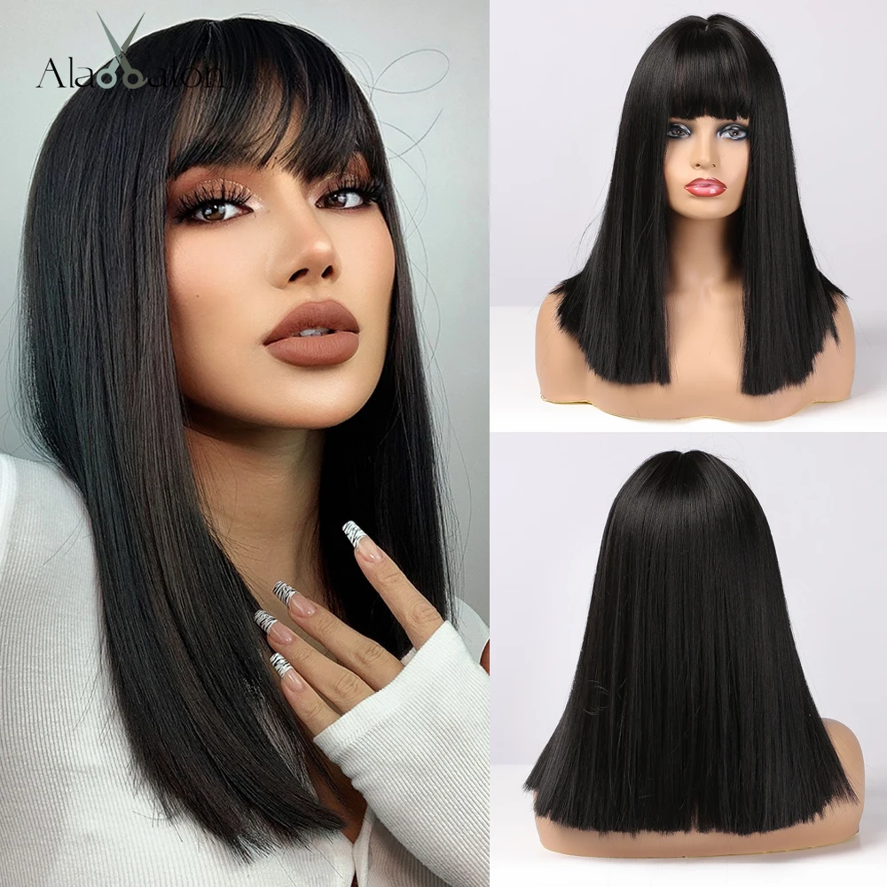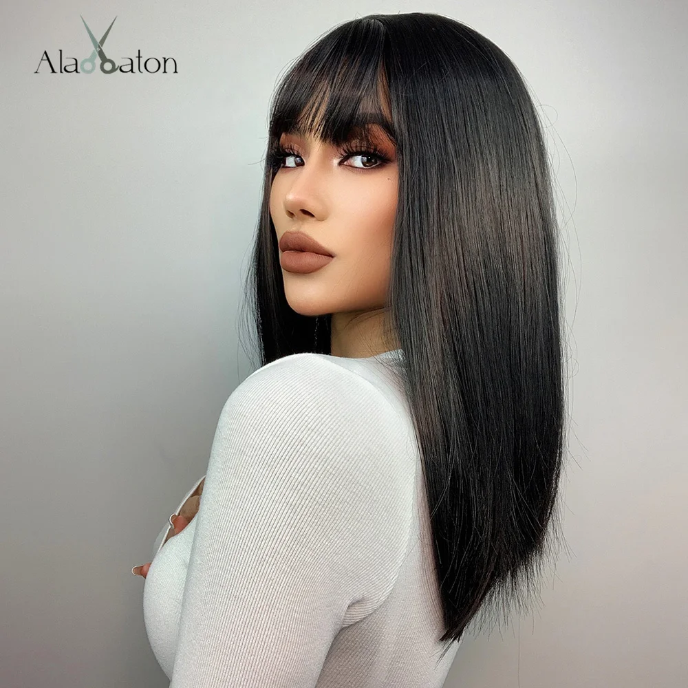 ALAN EATON черные прямые синтетические парики с полной челкой Лолита Парики для черных женщин Косплей Повседневные Вечерние термостойкие волокна