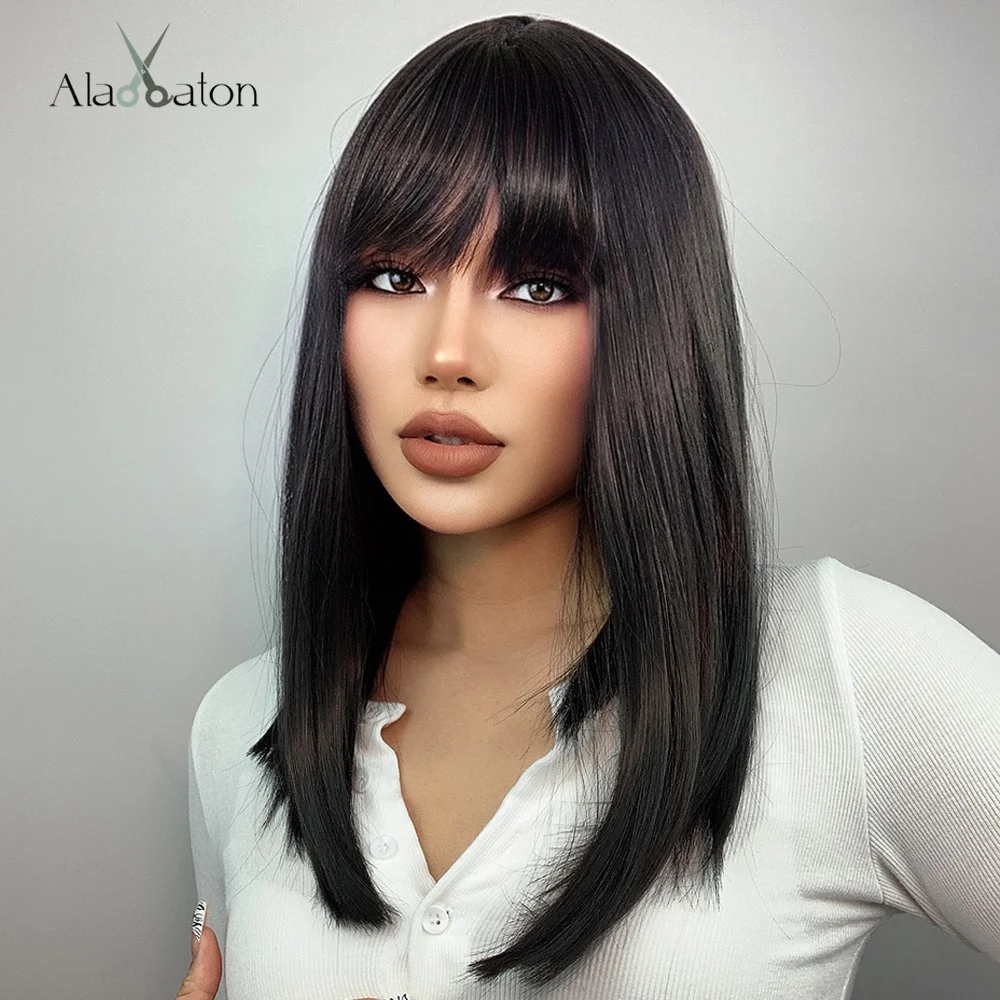Черные прямые синтетические парики ALAN EATON с полной челкой парики Лолиты для черных женщин Косплей ежедневвечерние Термостойкое волокно