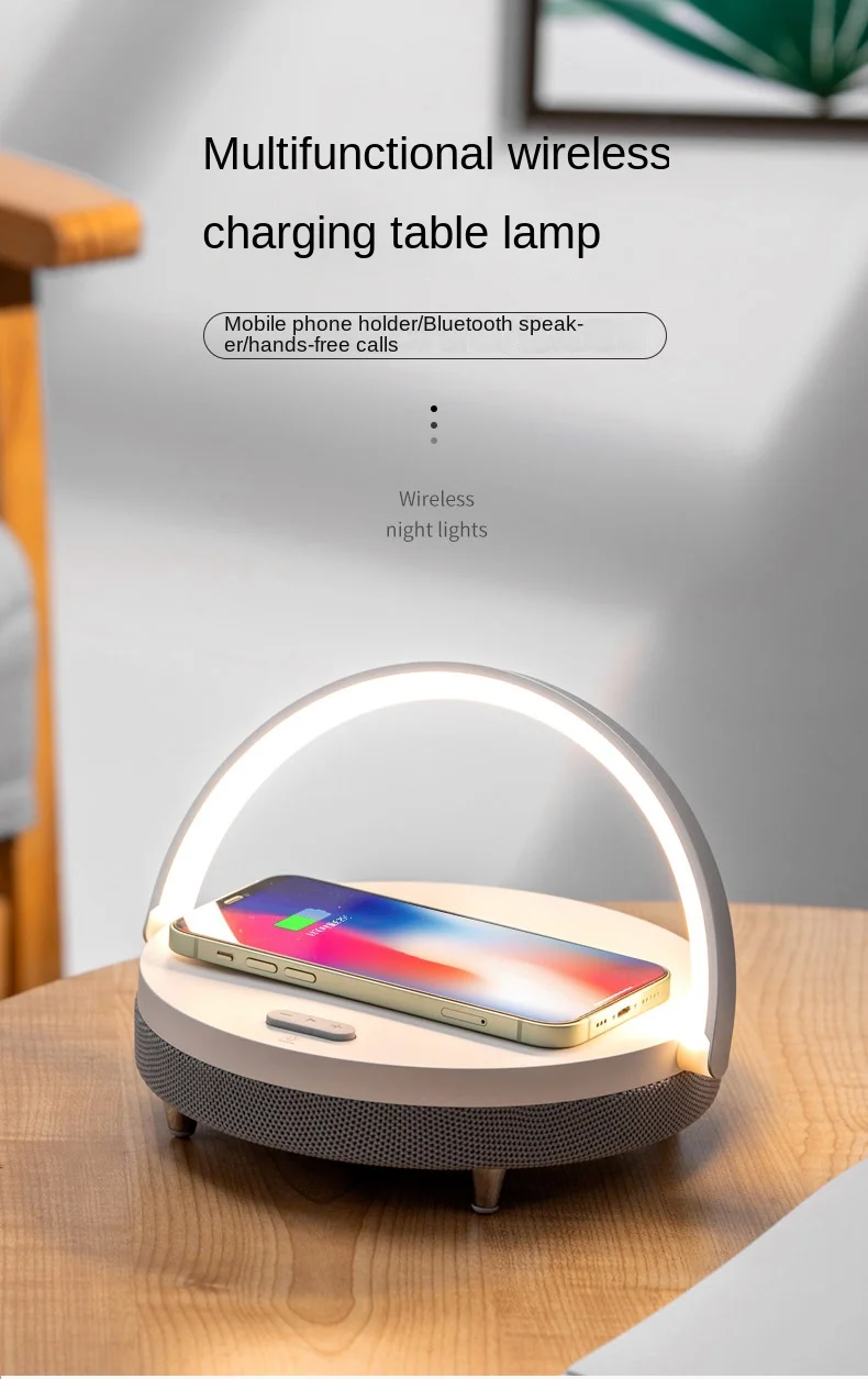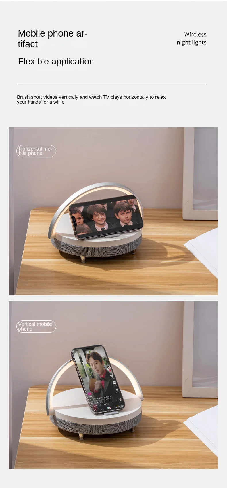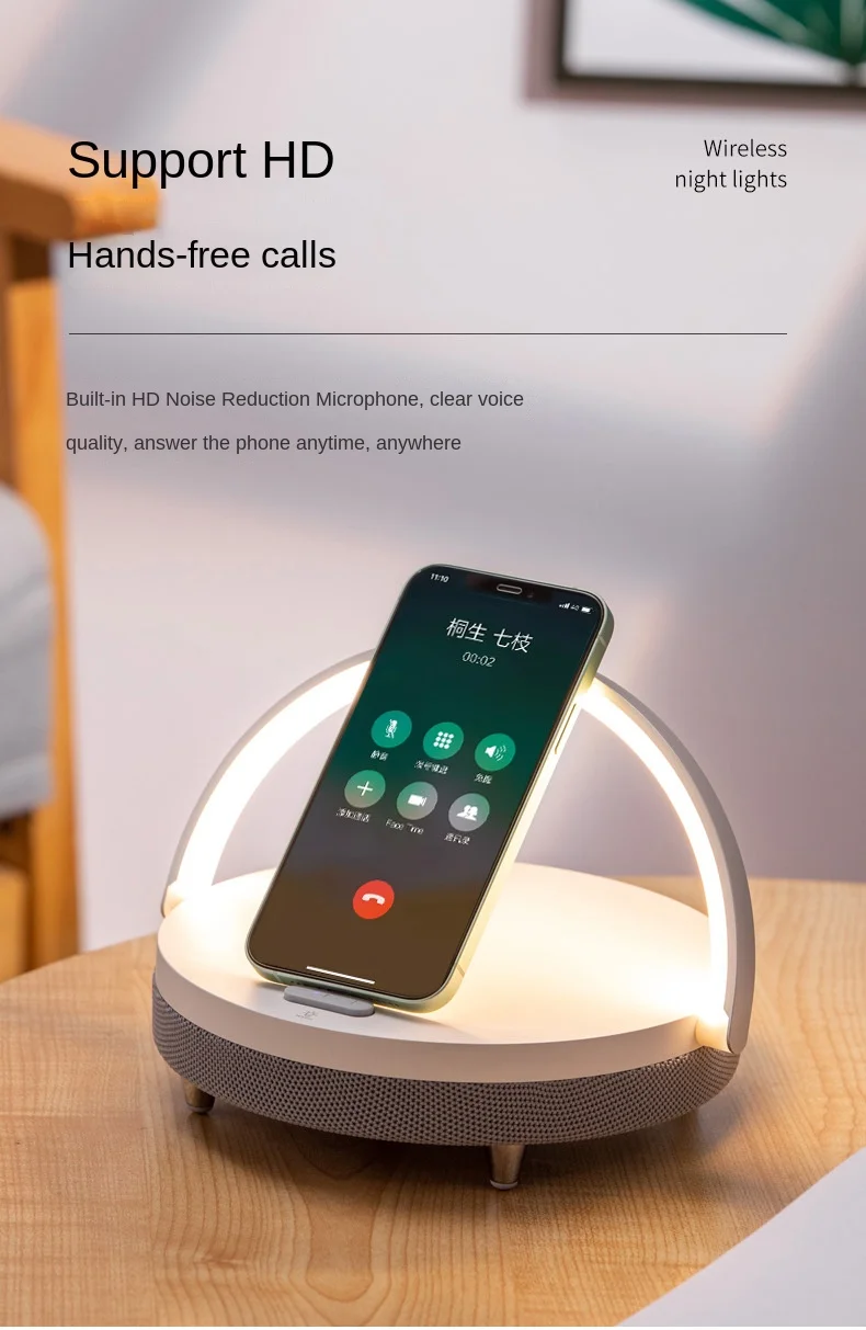 Bluetooth-колонка, деревянные беспроводные зарядные устройства, светодиодная лампа, удобный с держателем для iPhone 13, 12, 11, зарядное устройство для Huawei, Xiaomi