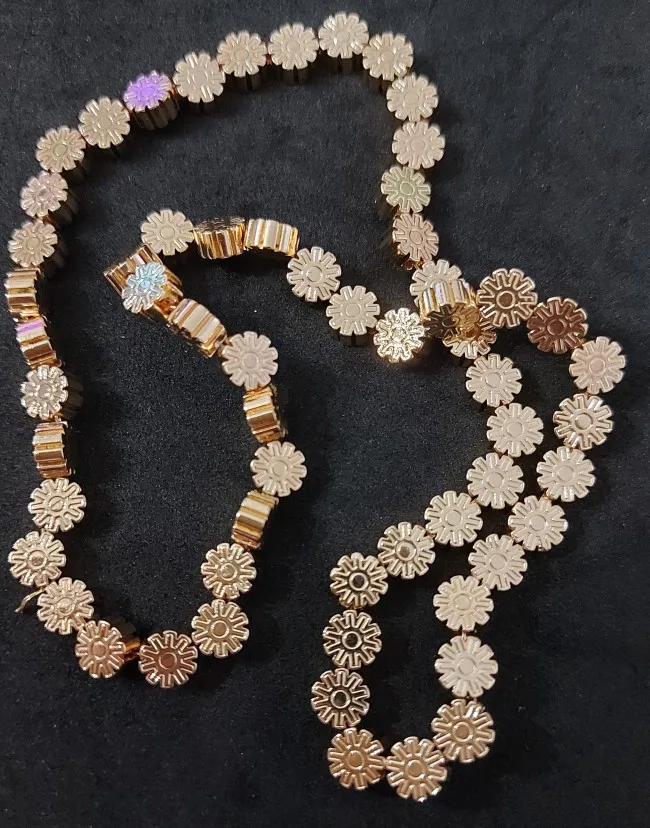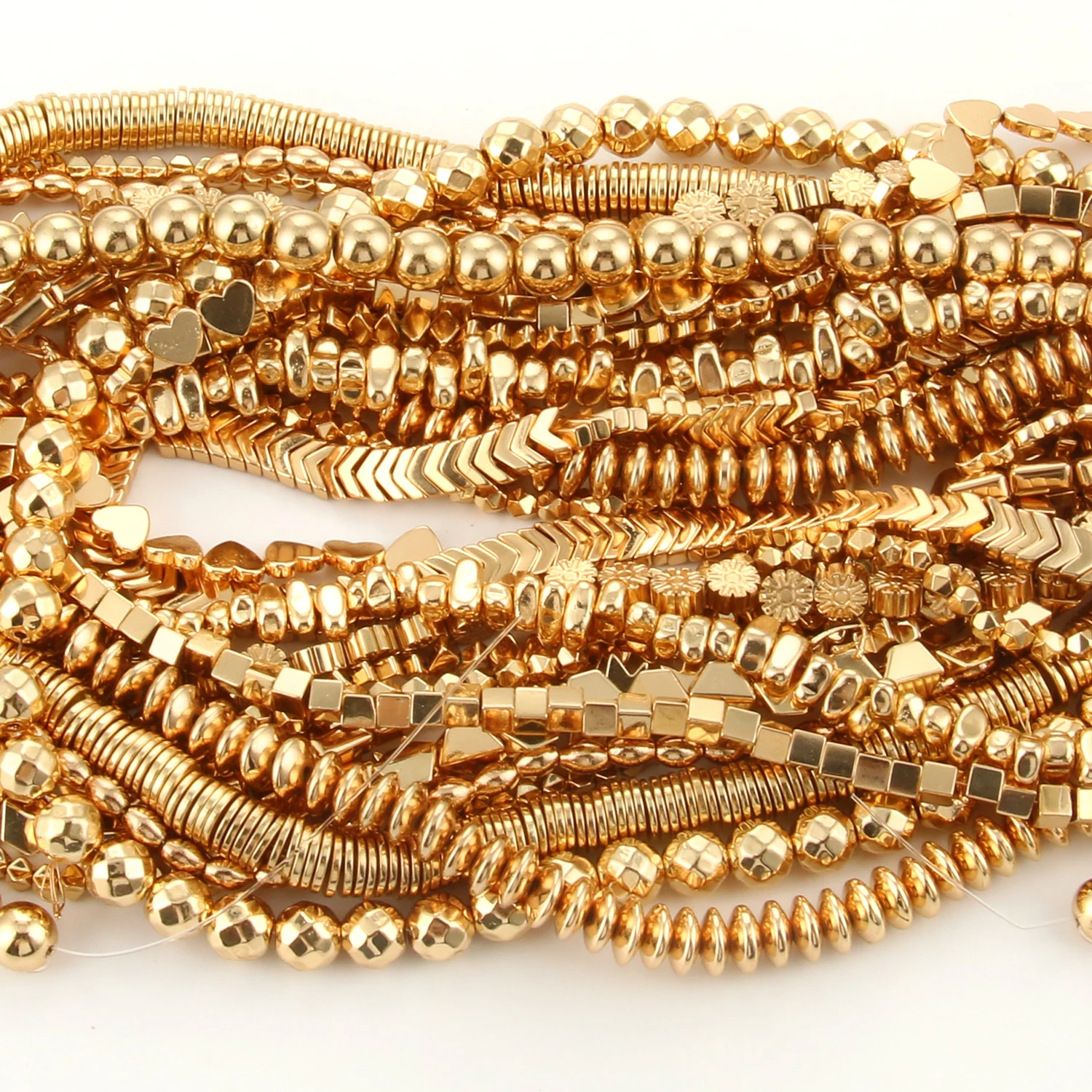 Очень красивые жемчужины из 9K серебряных гематит (будьте осторожны, это делает очень очень светлый золотой цвет, который нельзя легко собрать с другими цветами жемчуга в случае смешивания, чтобы сделать драгоценность/в этом случае лучше выбрать черный золотой 14K минимум).... Соня.