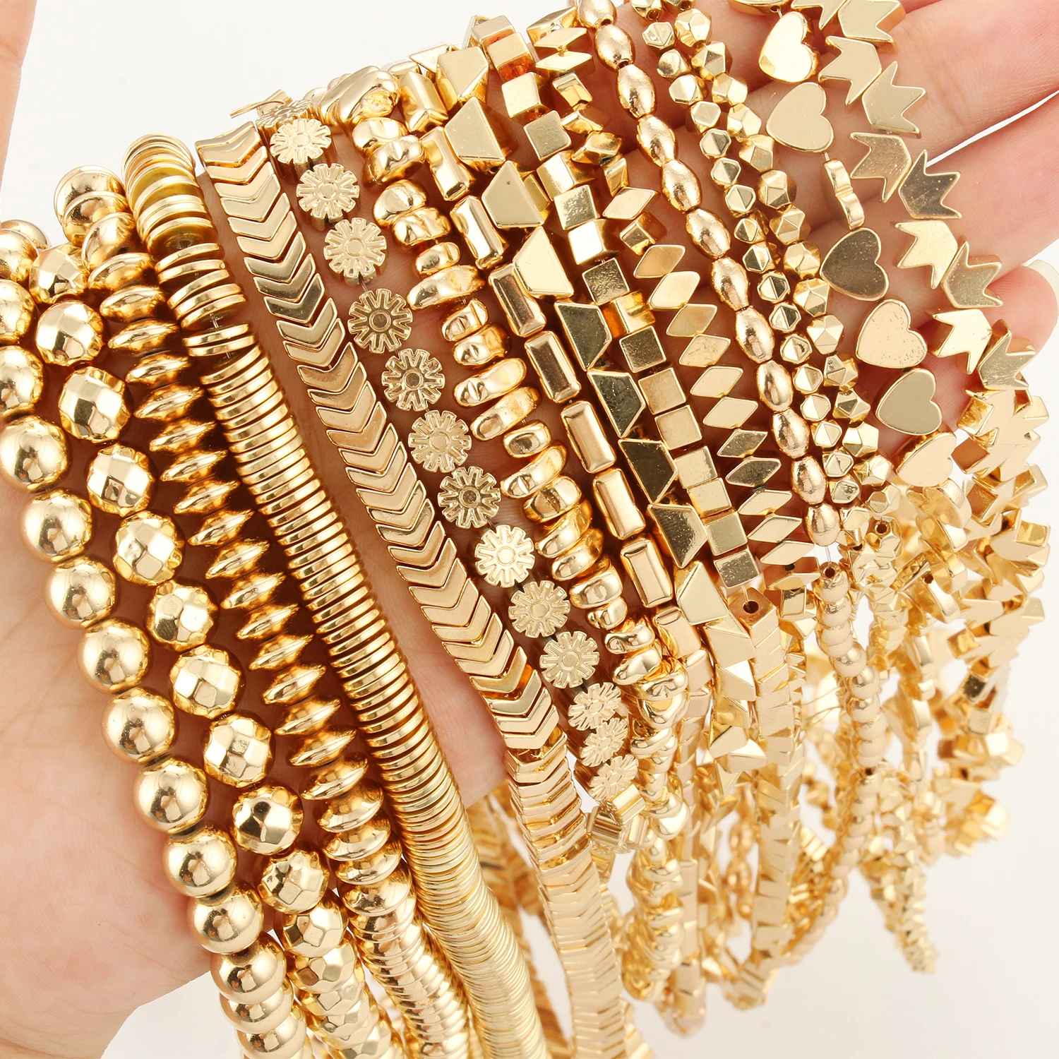 Натуральные позолоченные бусины из гематита 14 к, необычное круглое колье-браслет в форме сердца