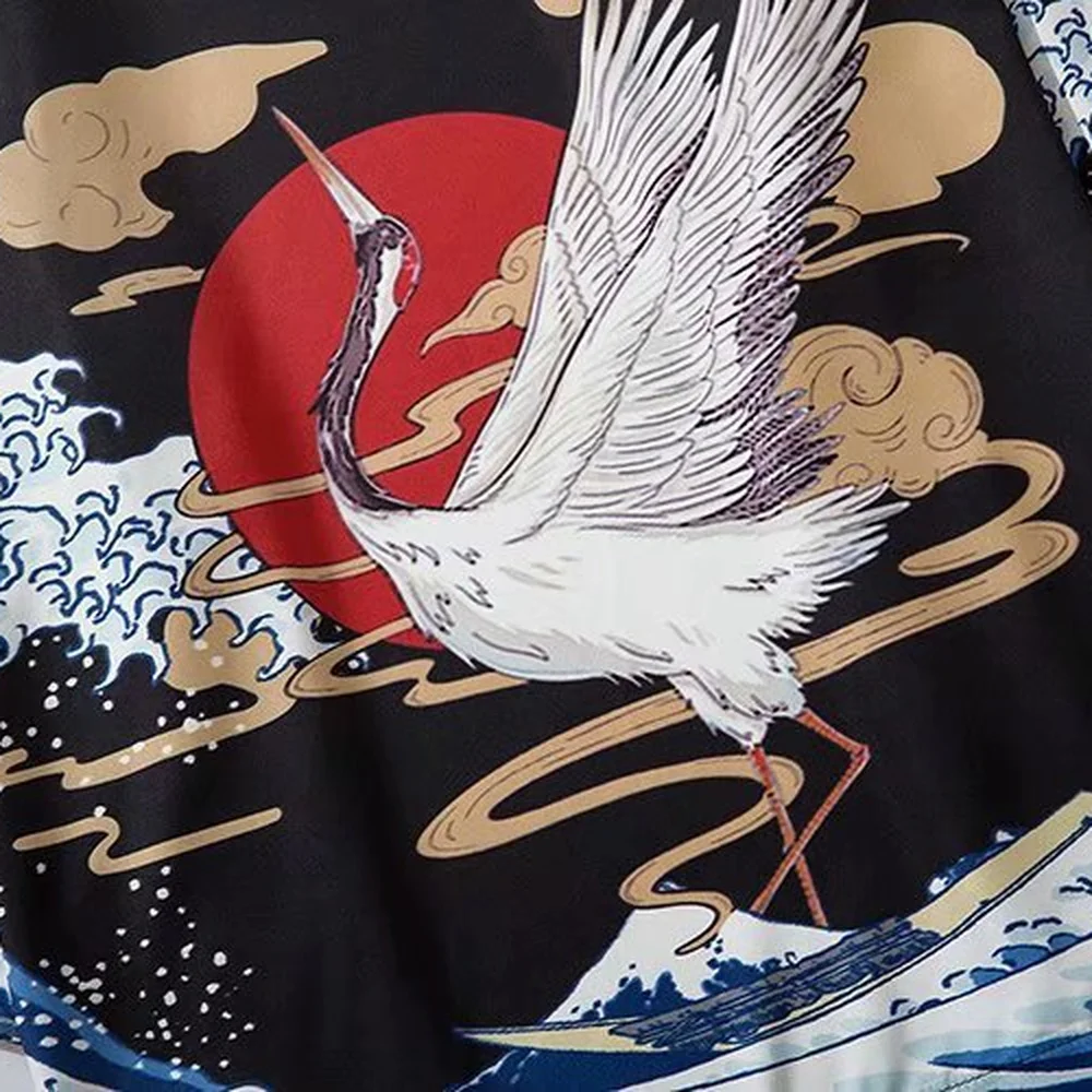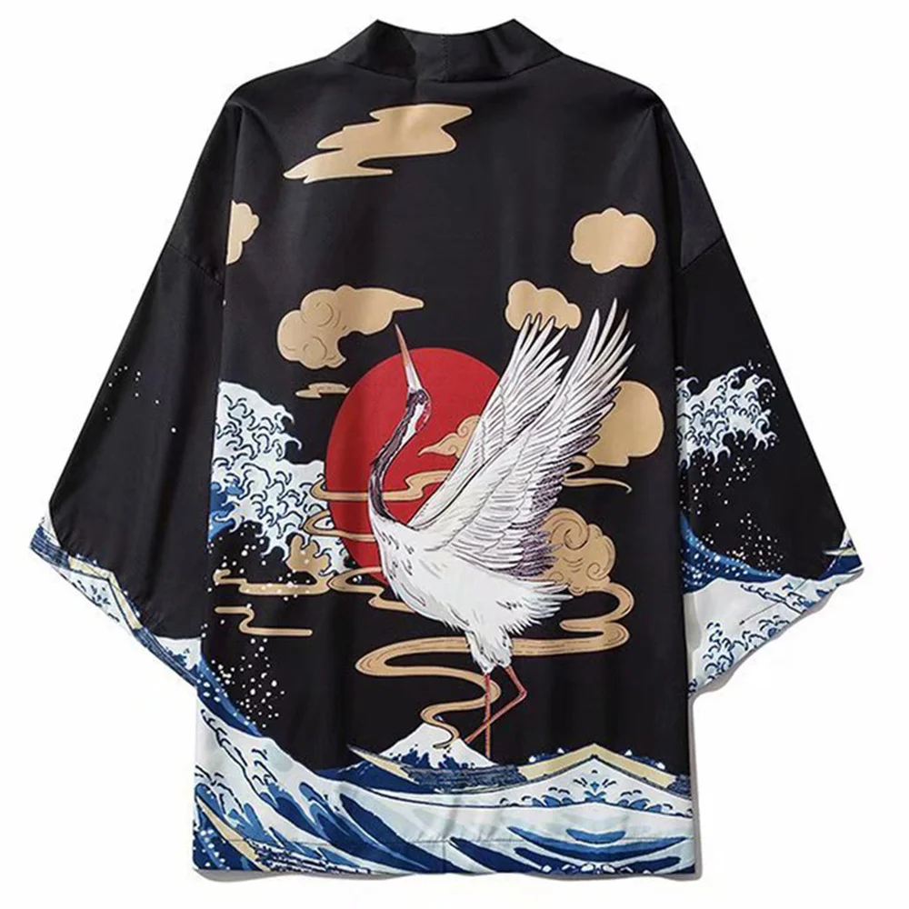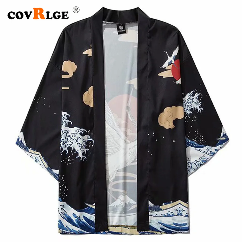 Мужская рубашка Covrlge в китайском стиле, кимоно с 3D принтом журавлей, летняя рубашка с рукавом три четверти, модель MCS173