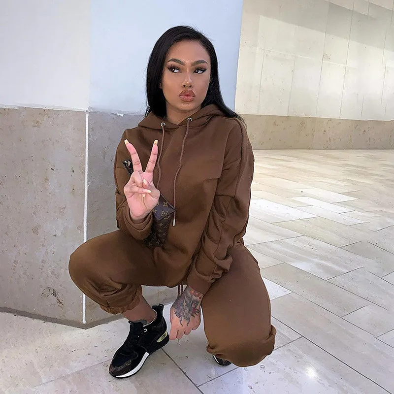 Зимние Модные наряды для женщин, спортивный костюм, толстовка с капюшоном и спортивные штаны, повседневные спортивные костюмы, комплект из 2 предметов