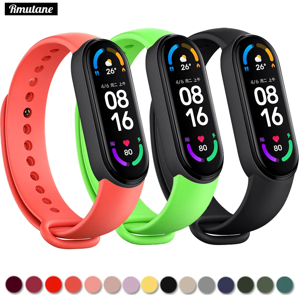 Однотонный ремешок для Xiaomi Mi Band 6 4 5 3, силиконовый браслет ...
