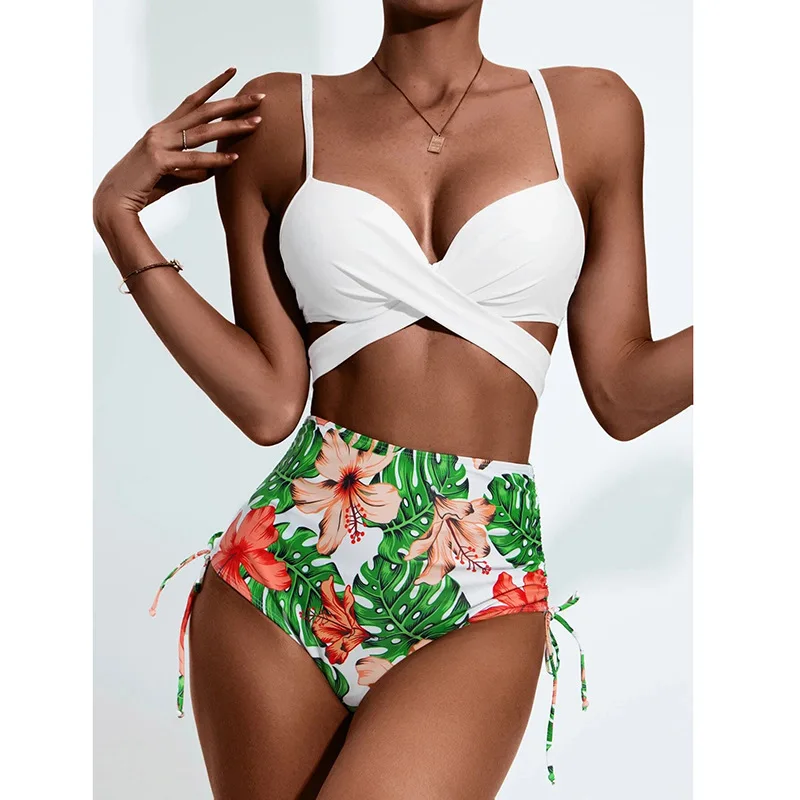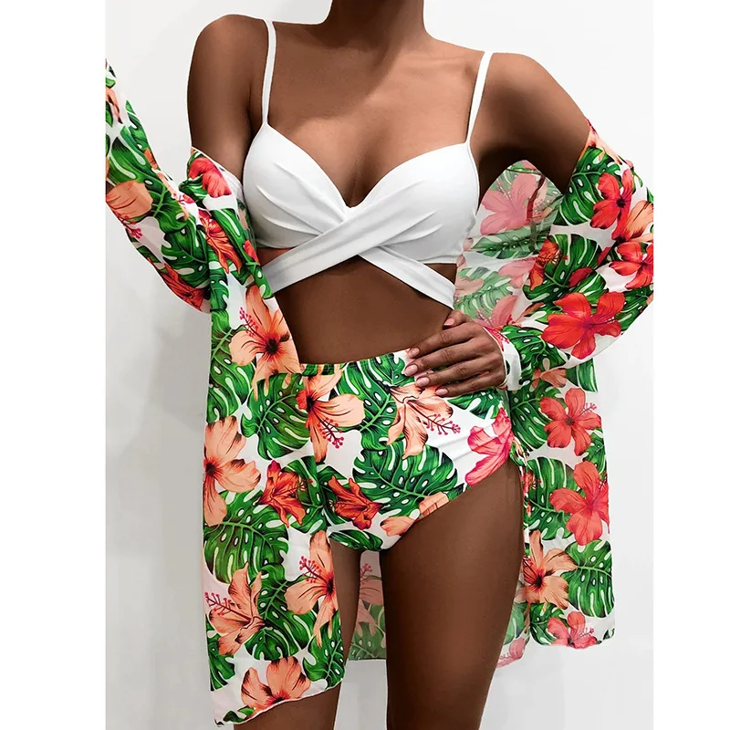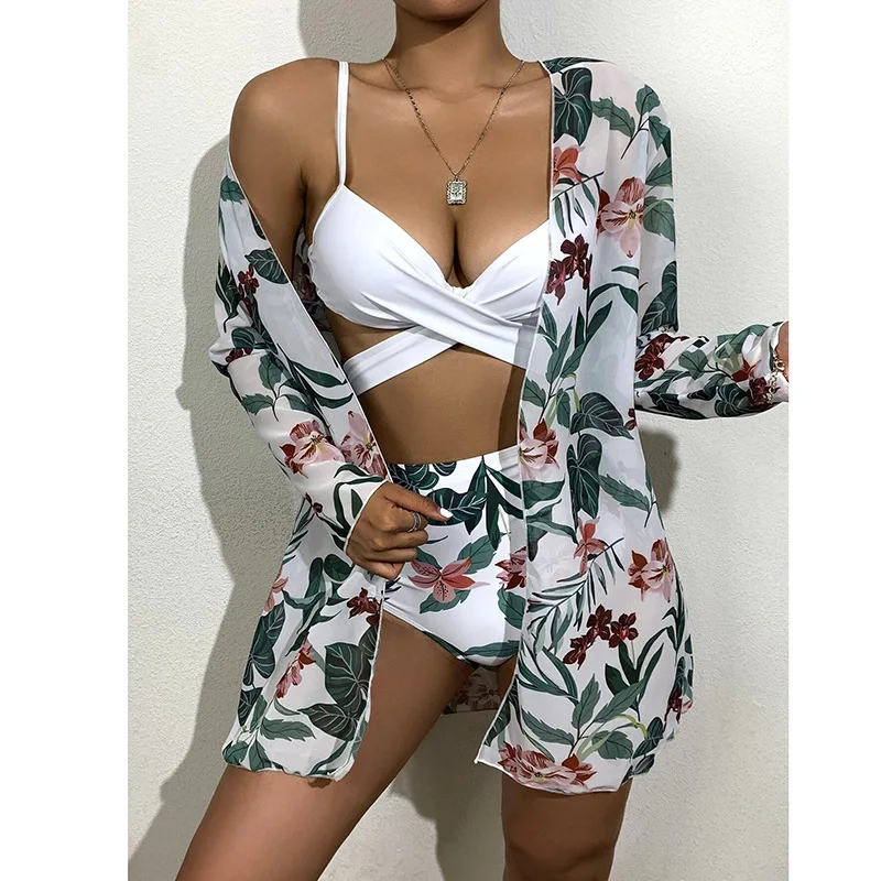 Соблазнительное бикини 2022, женский купальник с высокой талией и цветочным принтом, комплект бикини из 3 предметов с накидкой, Бразильское бикини, пляжная одежда, новинка