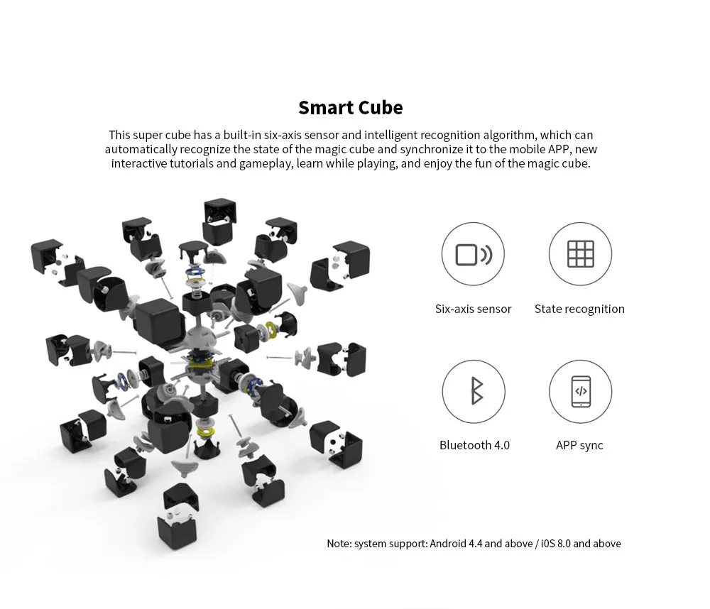 Параметры: Модель: суперкубе i3S Размер: 56,5 мм * 56,5 мм * 56,5 мм Батарея: 3,7 V литиевая Батарея Интерфейс: микро-зарядка через USB времени: 1 час Срок службы: 30 часов подключение: Bluetooth 4.0 Поддержка системы: iOS 8,0 или выше Android 4,4 или выше особенности: 1. Нет утомительной необходимости запоминать формулы не нужно/не восхищайтесь мастером, чтобы быстро восстановить снова. 2. 10 лет исследований приложение руководство, восстановить в 30s встроенный GiiKER патент CUBE-SYNC? Модуль синхронизации подключается к приложению, синхронизирует состояние, автоматически вычисляет самый быстрый путь и направляет в реальном времени Noviceas также может решить этот куб за 30 секунд. * Вращение на 90 градусов внешнего слоя магического Куба GiiKER записывается как один шаг. Скорость анимации может быть скорректирована самостоятельно. Решение в течение 30 секунд рассчитывается вращением на один шаг в секунду. * Технология GiiKER CUBE-SYNC определяет данные о движении магического Куба в реальном времени через встроенный датчик движения и передает его на ЦП, расположенный в центре сферической оси. В сочетании с алгоритмом распознавания, он автоматически вычисляет статус в реальном времени каждой стороны магического Куба и подключается к приложению телефона через bluetoot, обеспечивая синхронизацию. 3. Персональный магический куб для подключения Bluetooth скачать приложение GiiKER, подключить куб через bluetooth, автоматически генерировать руководство в режиме реального времени для решения. * Есть 9 полностью в приложении, каждый из которых может быть освоен примерно за 10 минут, и следующий курс может быть введен после прохождения теста. Нормальное время обучения 8 часов достаточно. 4. Интересно никогда не было в одиночестве ничего нового на вечерние друзей? Они всегда зарывают головы в своих телефонах. Возьмите магический куб GiiKER, сражайтесь друг с другом, получая больше удовольствия. 5. Это волшебный куб, также геймпад поворачивает куб, чтобы играть в различные веселые игры. Новый мировой рейтинг игроков. Немедленно Бросьте вызов вашей руке и мозгу. 6. Конкурентный стандарт строгий технический контроль работы в строгом соответствии с конкурентным стандартом убедитесь, что каждый поставляемый магический куб является конкурентоспособным 7. Уровень соревнований ORACAL полная яркая наклейка соответствует стандарту конкурентоспособного игрока s независимо от стоимости импортированного Германии профессионального уровня соревнований стикер s независимо от того, насколько быстро, вы можете четко видеть куб. 8. Подвижный Магнитный модуль, встроенный 48 сильных магнитов, точное позиционирование, удобное ощущение руки, более сильный ритм звука Магнитного Всасывания, как с BGM, не может/не останавливается на первом месте! 9. Дизайн гоночной структуры больше накапливает вращение и стабильную эластичность инновационная гоночная структура, более точные и более стабильные плееры на всех этапах могут оспаривать скорость вашей руки так быстро, как они хотят 10. Умный временной прорыв скорость Попрощайтесь с традиционным таймером, Интеллектуальный расширенный режим обучения записывает время, шаги, Скорость и решение точно помогают игрокам улучшить свои навыки в научно-технической посылка включает в себя: 1 усовершенствованный супер куб i3s 1 зарядное устройство в форме гарнитуры 1 Руководство пользователя