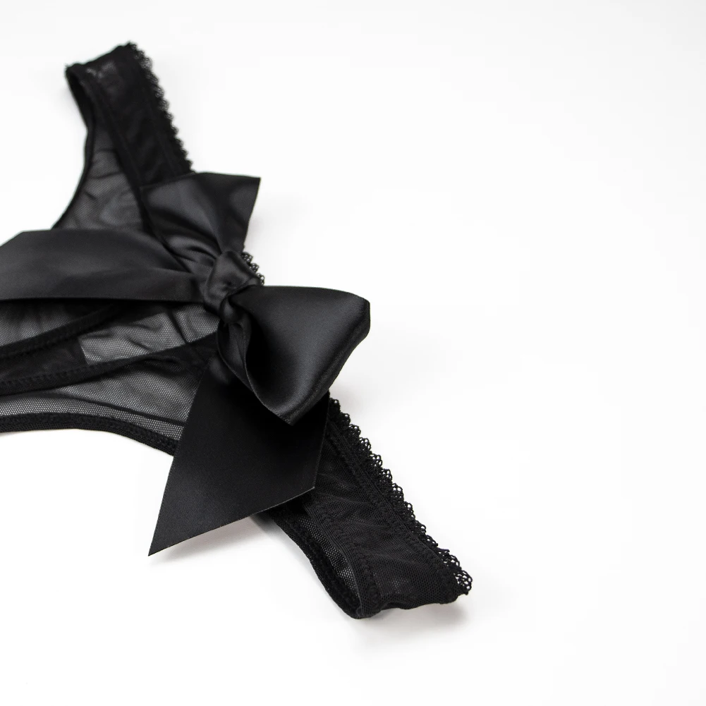 Varsbabyкомплект из 3 предметов, женские сексуальные трусики, стринги с бантом, кружевные стринги, трусы с низкой талией, сетчатые прозрачные стринги, черные S-XXL