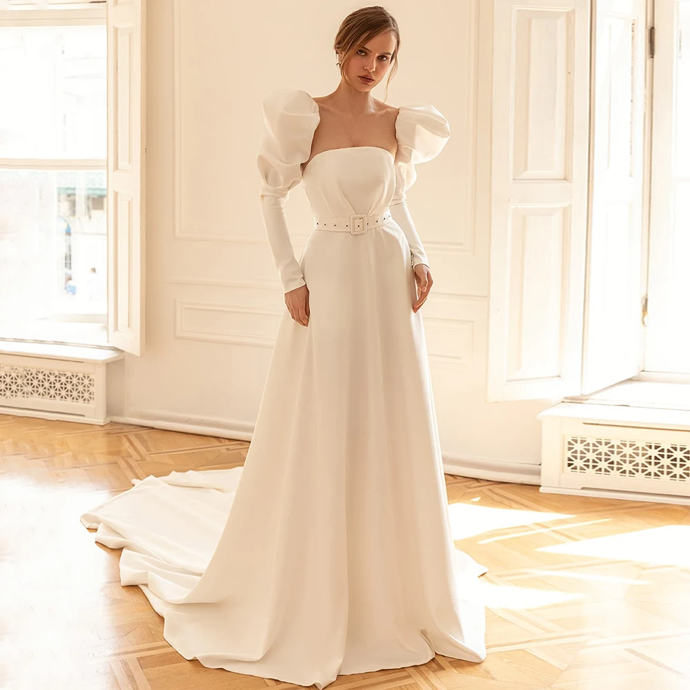 Женское свадебное платье Weilinsha, ТРАПЕЦИЕВИДНОЕ ПЛАТЬЕ со шлейфом, со съемными длинными рукавами, без бретелек, модель 2022