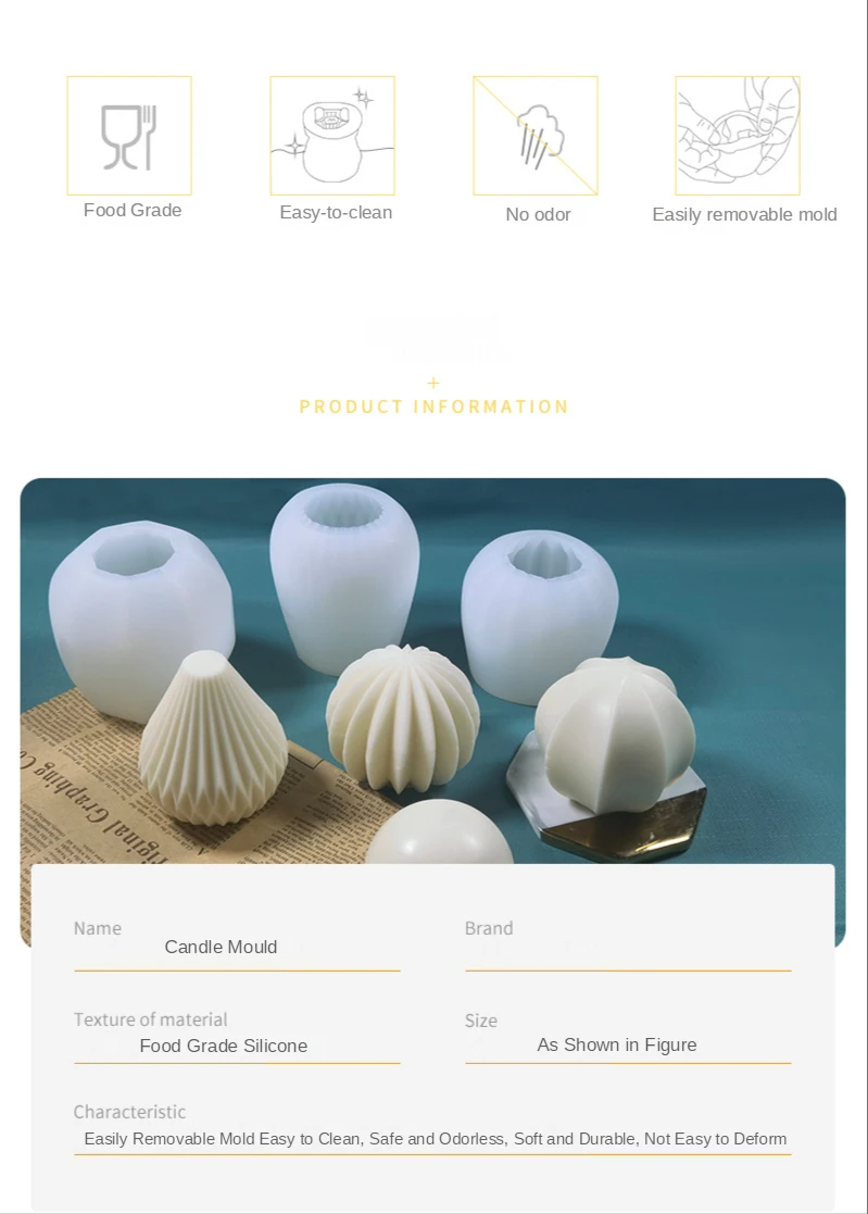 Характеристики продукта:1. Силиконовый материал: Форма изготовлена из силикона и может выдерживать высокие и низкие температуры.2. Прочная форма: ее можно повторно использовать много раз, поэтому форма прочная, не легко повреждена и треснута.3. Легкое удаление: Сферическая форма для свечей разделена на две с половиной для легкого удаления свечи.4. Длительный срок службы: форма имеет длительный срок службы и легко моется.5. Широкое использование: можно использовать d при производстве парафина, воска и свечей из пчелиного воска.Характеристики продукта:1. Материал: силикон2. Размер: как показаноУпаковочный лист:1 * силиконовая формаПримечание:1. Тем фактом, что замеры осуществляются вручную, размер будет иметь, так как измерения выполнены вручную 0,5-2 мм, выбирайте размер исходя из фактического размера.2. В связи с использованием разных по светильник экране монитора фактический цвет товар точно такой же, как и цвет изделия на фото может быть s светильник ly отличается из-за характеристик монитора компьютера.3. Цвета могут отличаться в зависимости от партии.