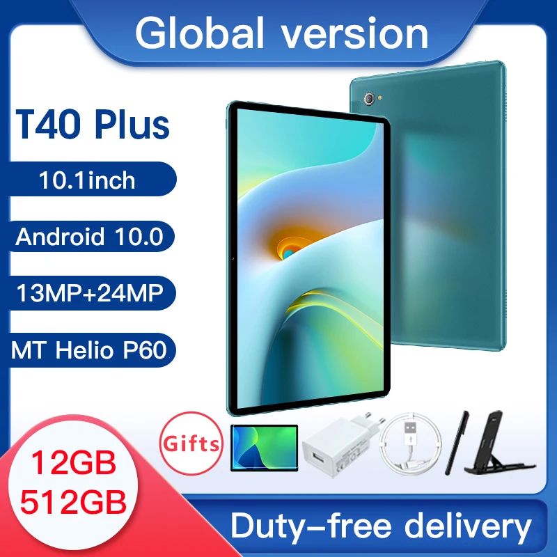 Планшет T40 Plus на Android 2022, экран 10,0 дюйма, 12 Гб + 512 ГБ