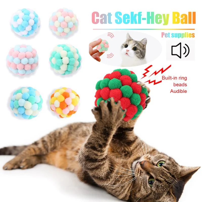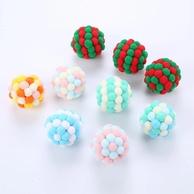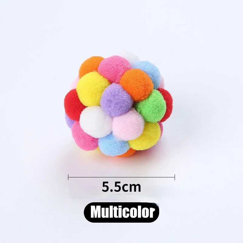 2. Разноцветные плюшевые шарики с колокольчиками, привлекают внимание кошек.