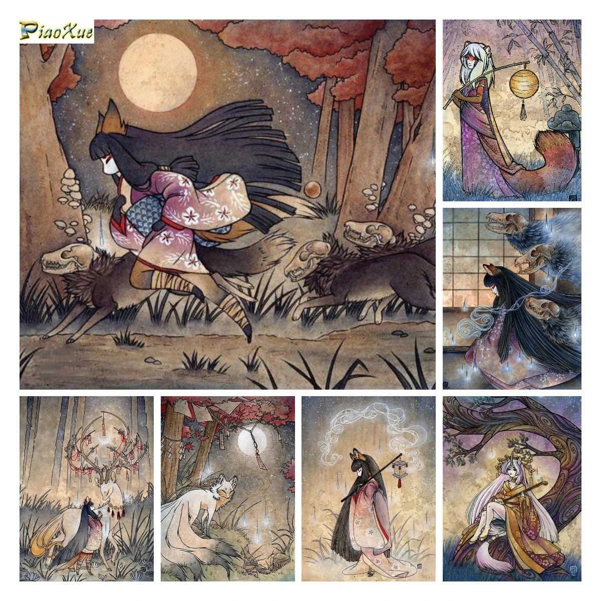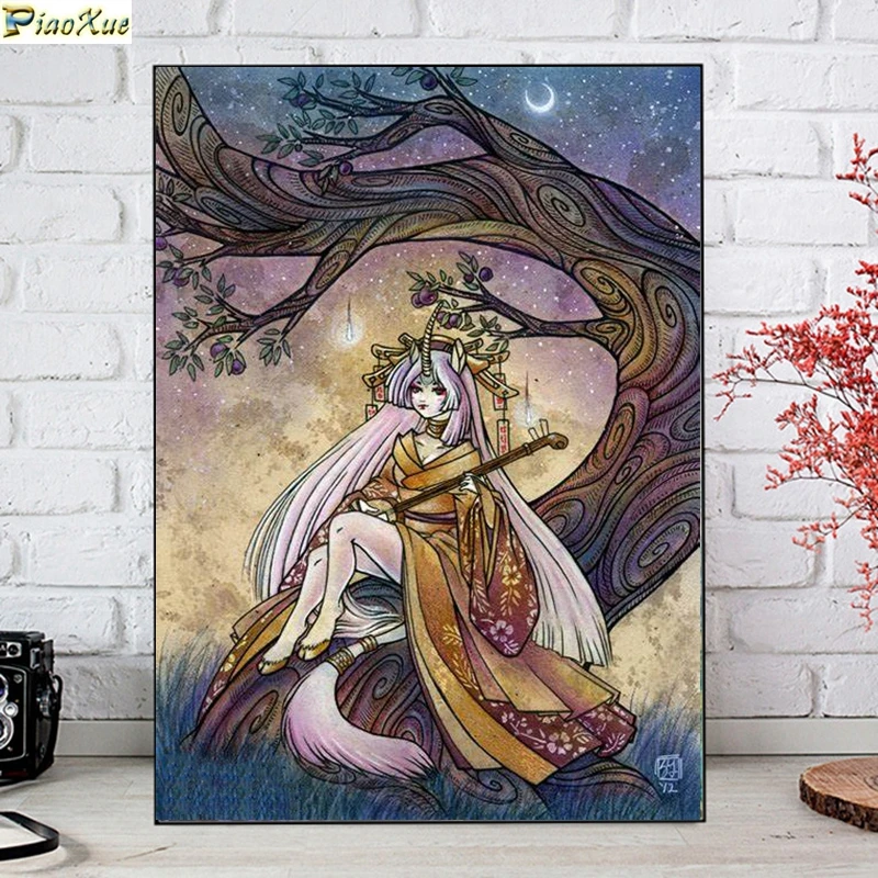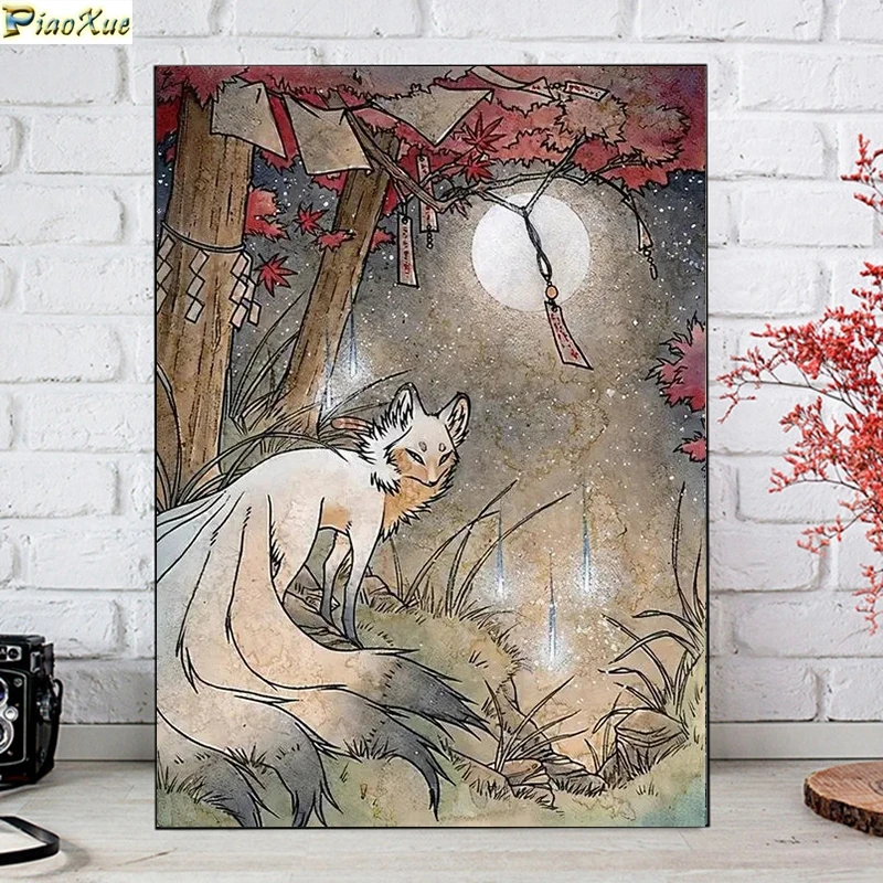 Kyubi Kitsune 5D алмазная живопись Kitsune Yokai японская ретро лиса полная квадратная мозаика вышивка своими руками Набор для вышивки крестиком домашний декор