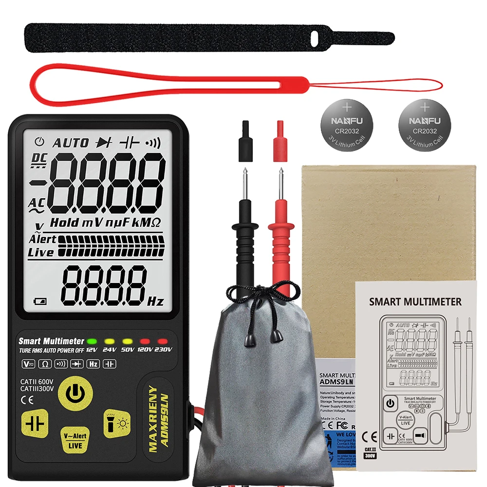 Цифровой мультиметр MAXRIENY S9CLN, 9999, сверхпортативный умный вольтметр, дисплей EBTN, сопротивление напряжения, конденсатор, тестер диодов Гц