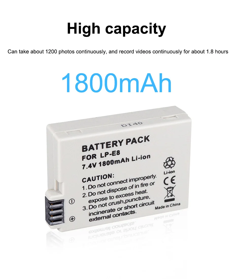 Аккумулятор PALO LP-E8 LP E8 LPE8, 1800 мА ч, двойное зарядное све...