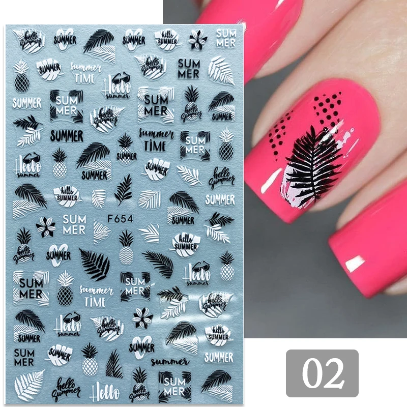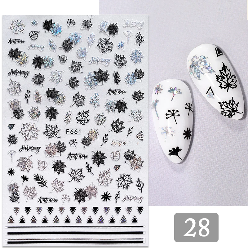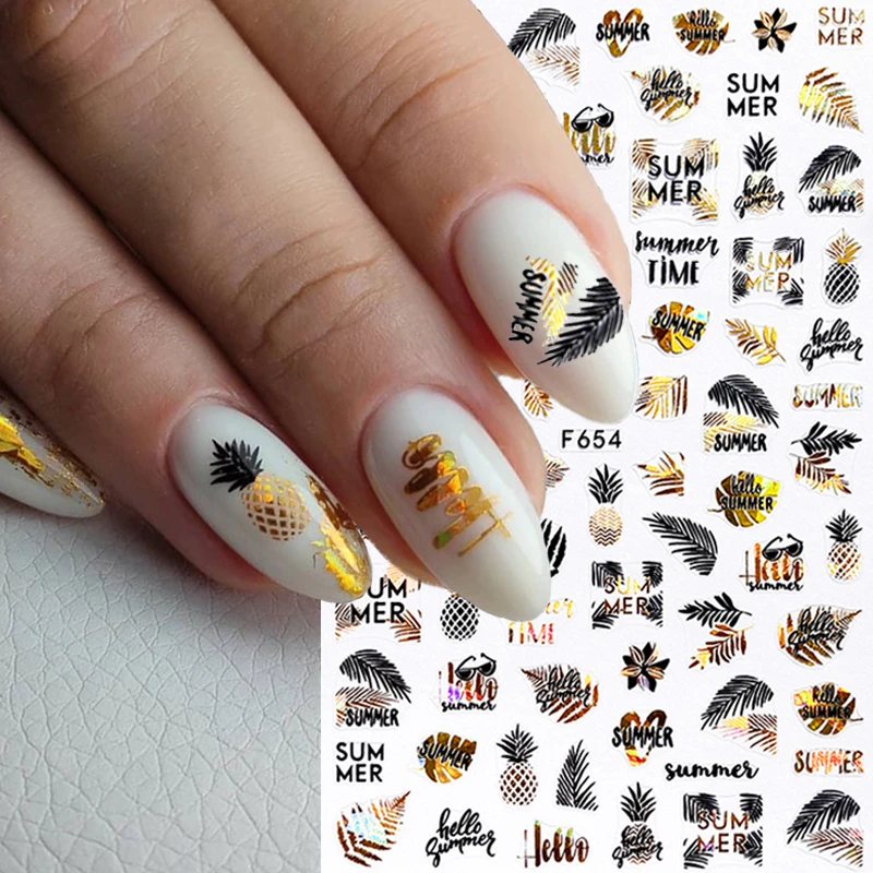3D Золотые листья, наклейки для ногтей, клейкие Переводные картинки, Летние черные, белые самодельные дизайнерские переливающиеся обертывания для дизайна ногтей, украшения для маникюра