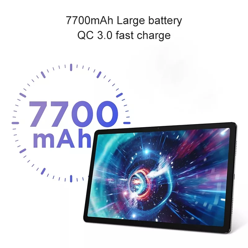 Аккумулятор большой емкости 7700 мАч достаточно для поддержки использования в течение всего дня. Вам не нужно беспокоиться о силе обучения и развлечений. Он поддерживает быструю зарядку QC 3,0, которая может быстро пополнять мощность за короткое время и уменьшить ожидание.