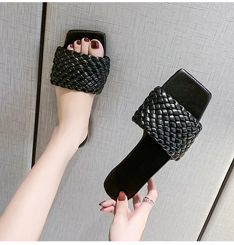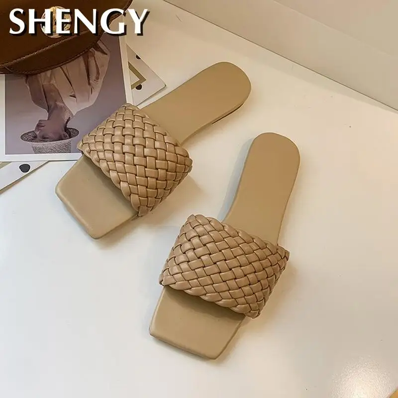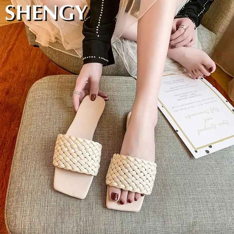 Шлепанцы женские с квадратным носком, сланцы, летняя обувь для дома и улицы, модель 2022
