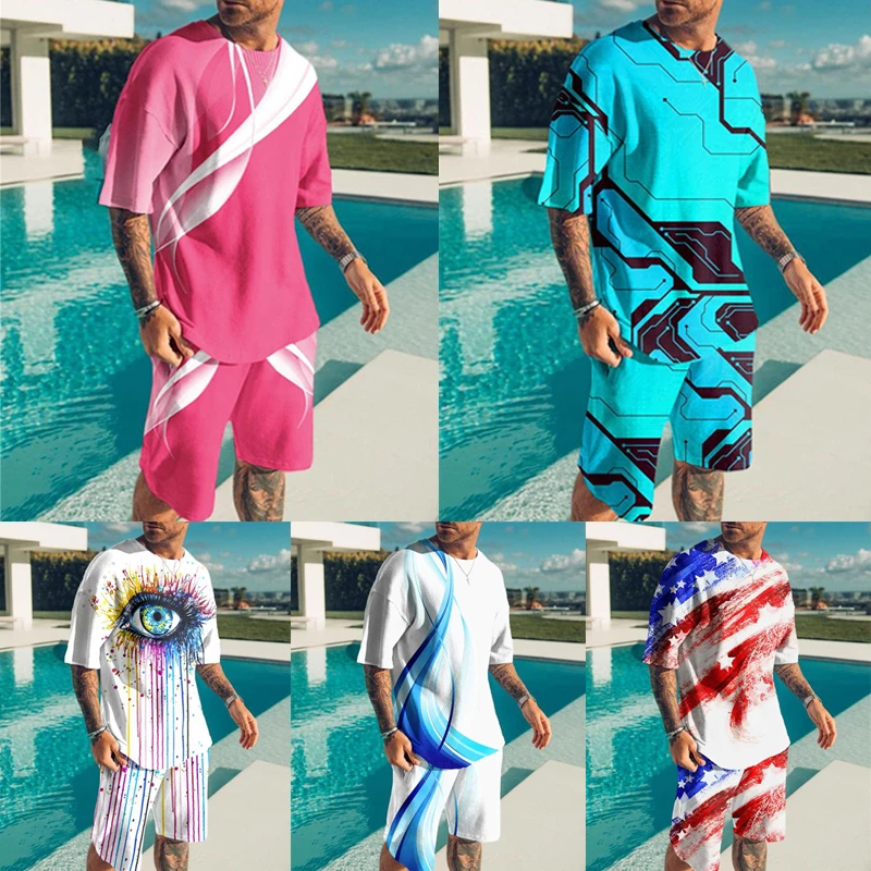 Костюм спортивный в стиле Харадзюку для мужчин и женщин, повседневный комплект с коротким рукавом, комплект одежды большого размера с принтом граффити, лето