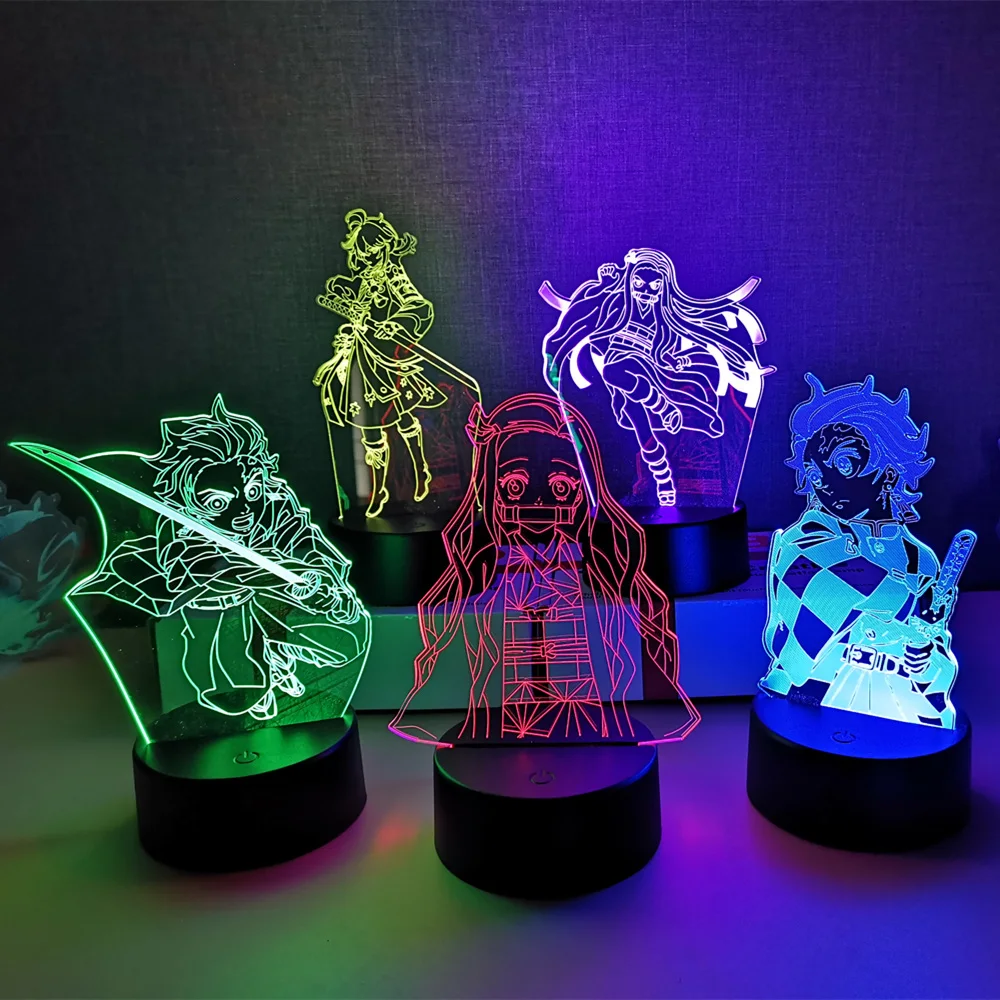 Светодиодный светильник для дома, лампа аниме Zenitsu для рассекания демонов, Tanjiro, манга, киметасу, No Yaiba, RGB 3D неоновая вывеска для украшения спальни