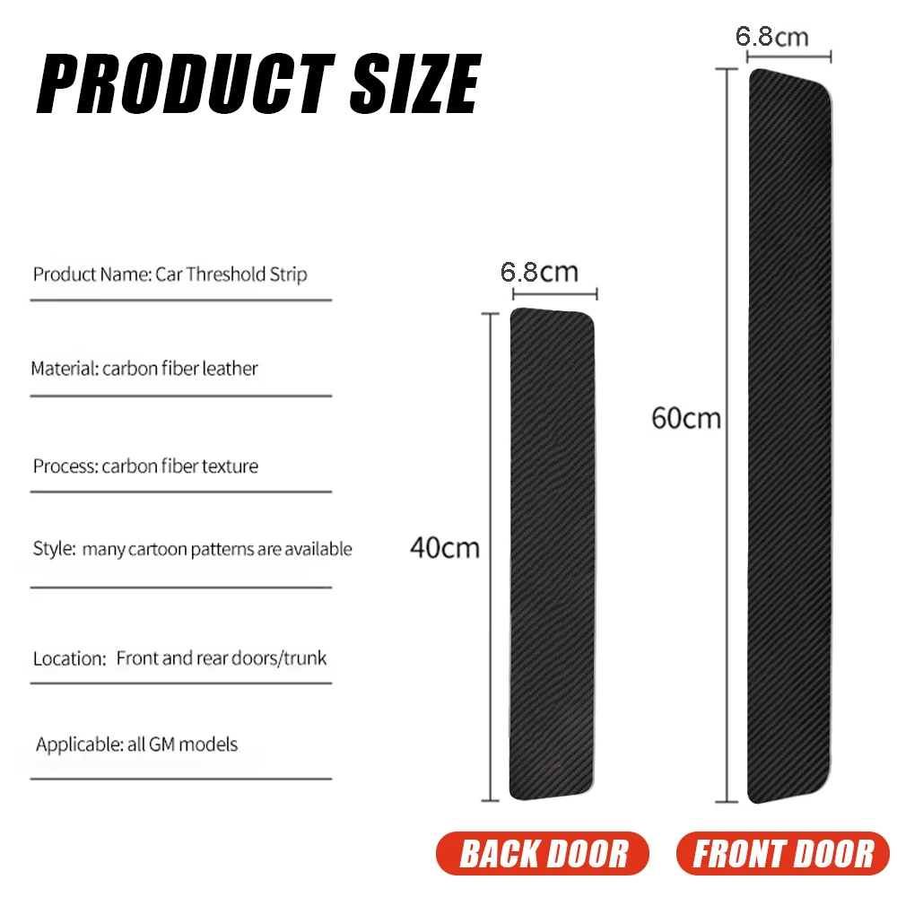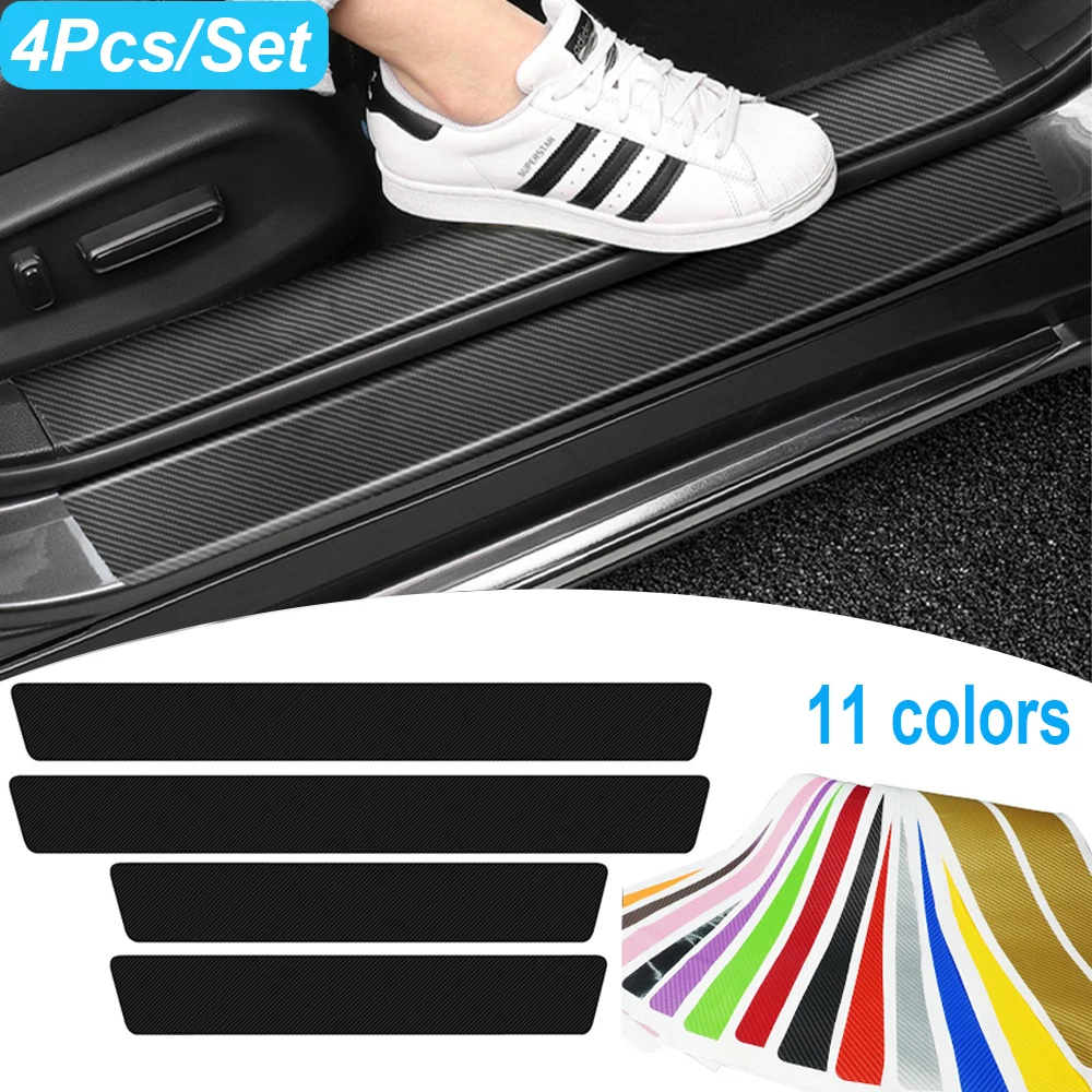 4 шт., наклейки на пороги автомобиля, из углеродного волокна