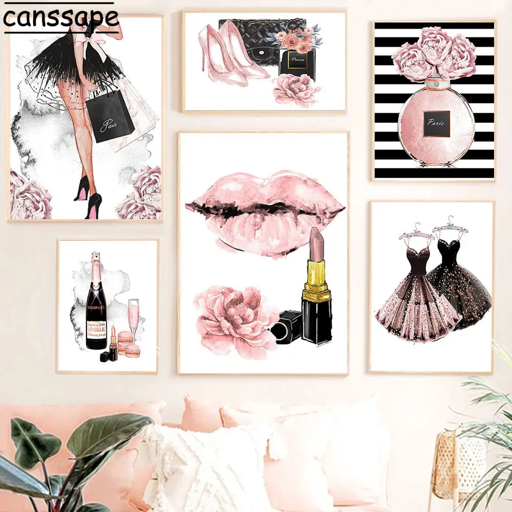 Модные настенные плакаты для девушек, плакат на стену цвета шампанского, флакон духов, Картина на холсте, скандинавские настенные картины, декор комнаты для девушек