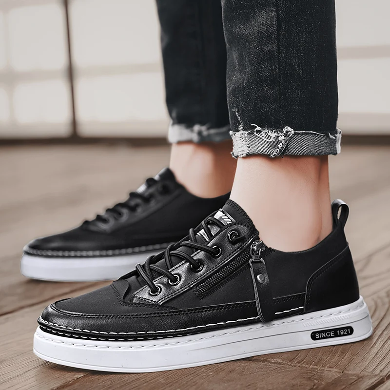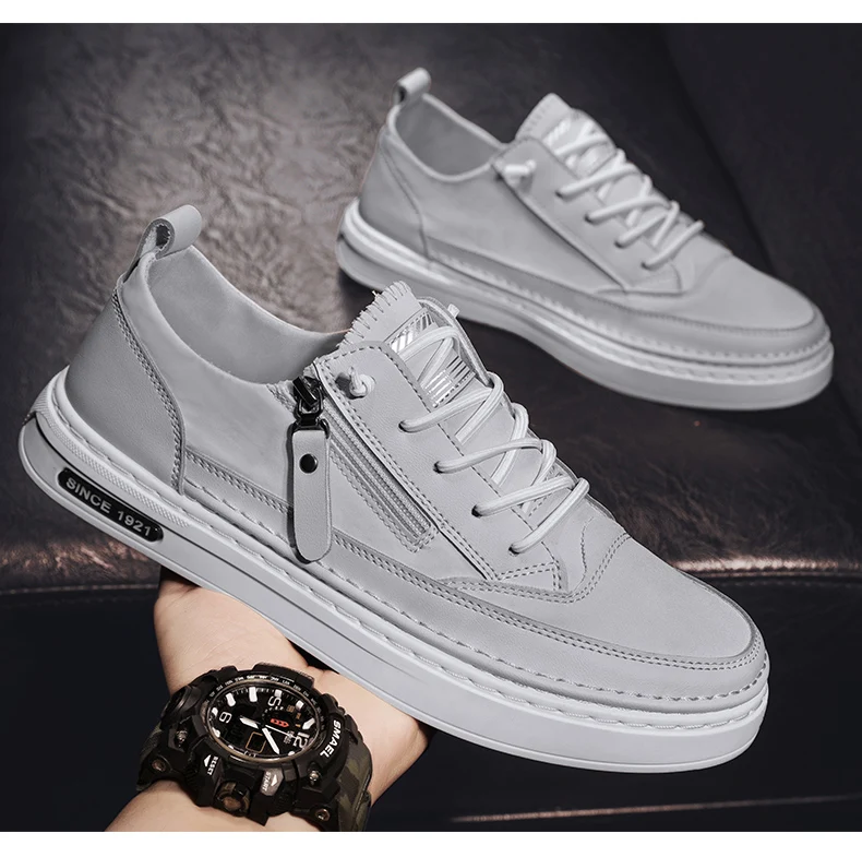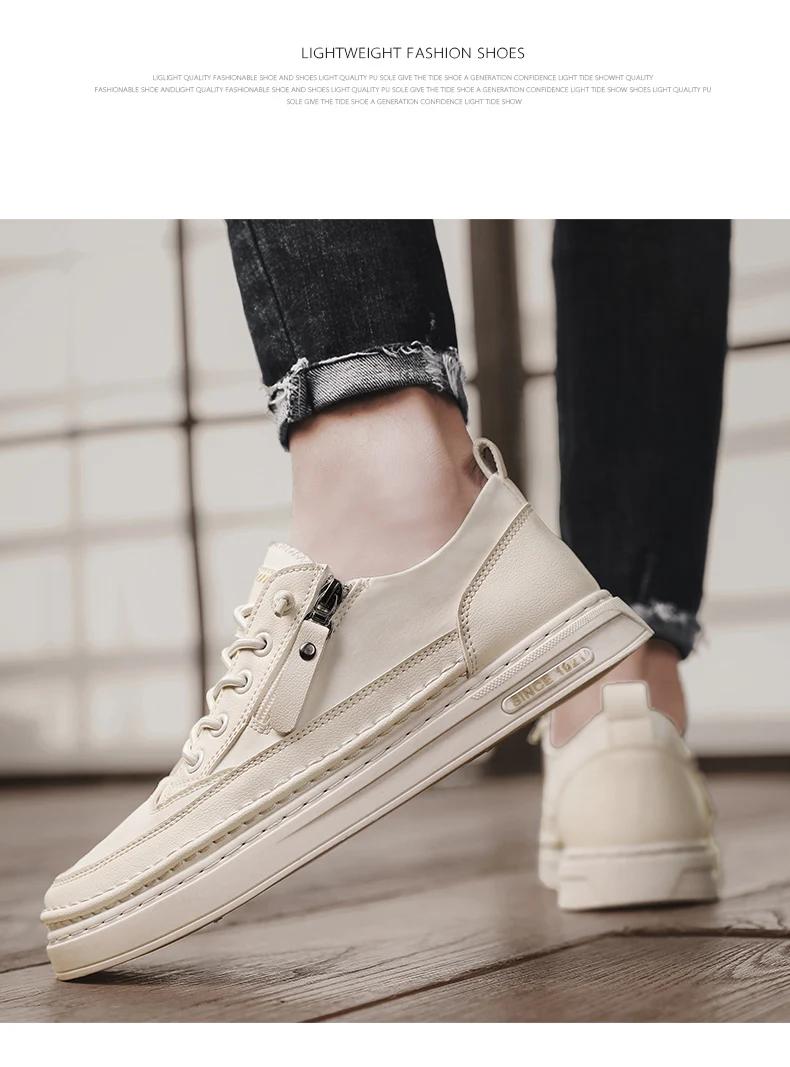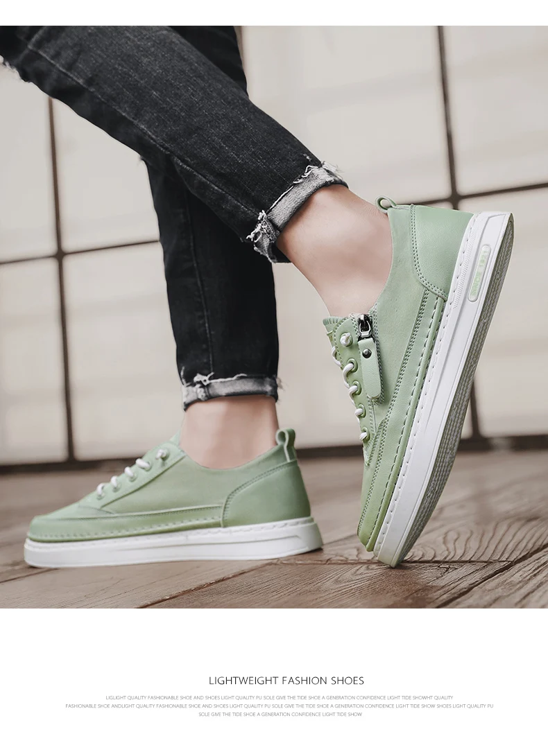Туфли мужские из вискозы, повседневные модные кожаные туфли, плоская подошва, корейский стиль, на молнии, дышащие, для студентов, лето 2022