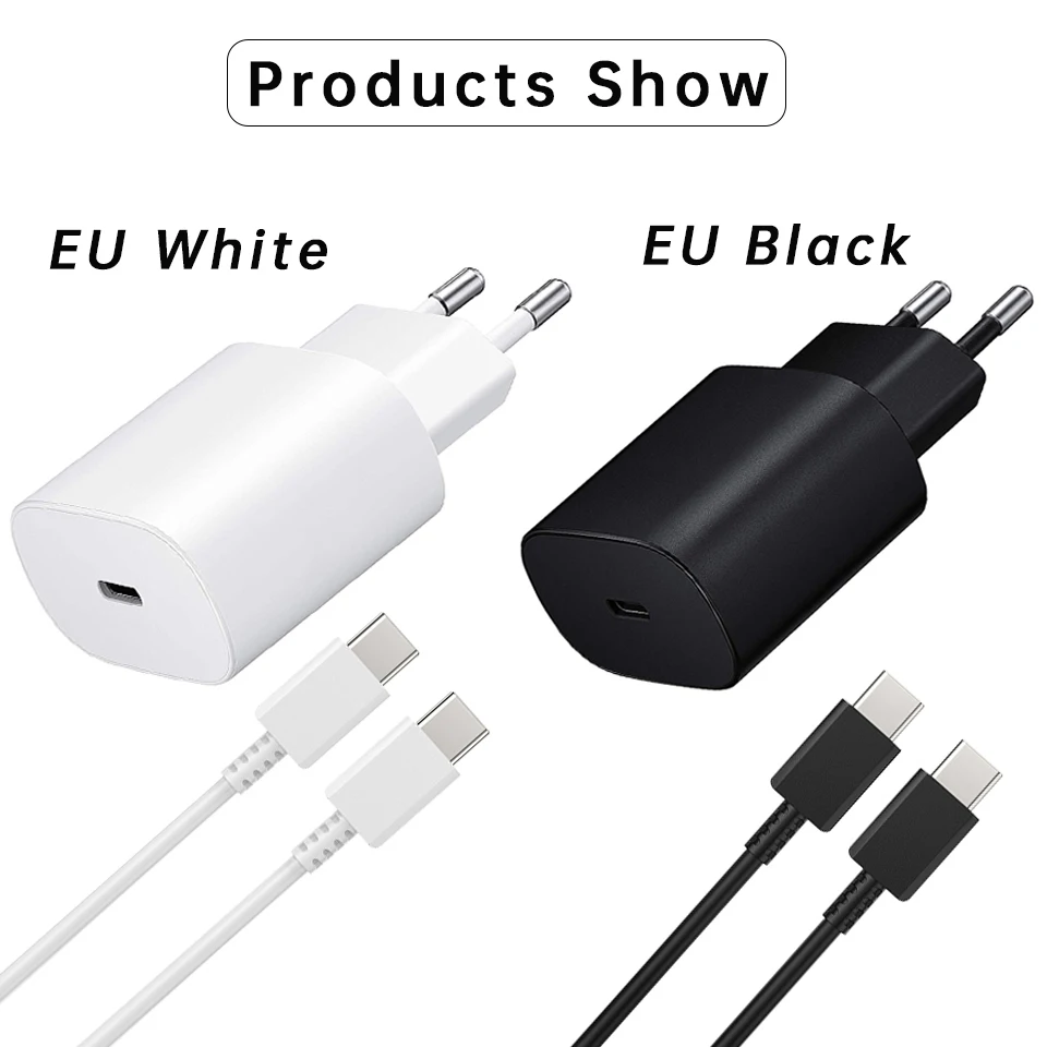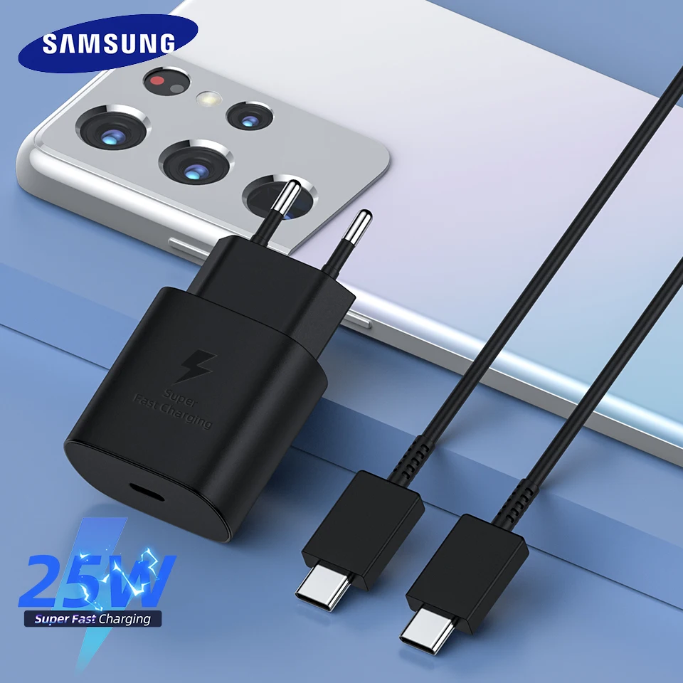 Супер быстрое зарядное устройство Samsung S21 S22 Note 20 10 A70, зарядное устройство, зарядное устройство 25 Вт, адаптер питания европейского стандарта для Galaxy Note20 S20 A80 S10, кабель типа Type C