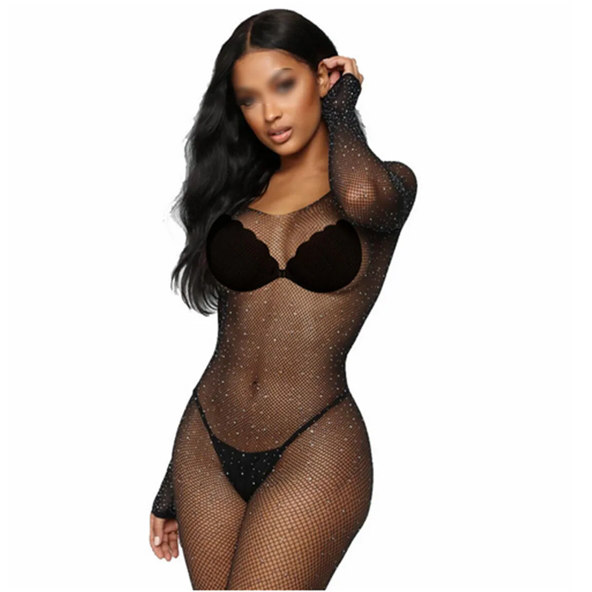 Сексуальное нижнее белье в сеточку Стразы боди Тедди комбинезон жен...