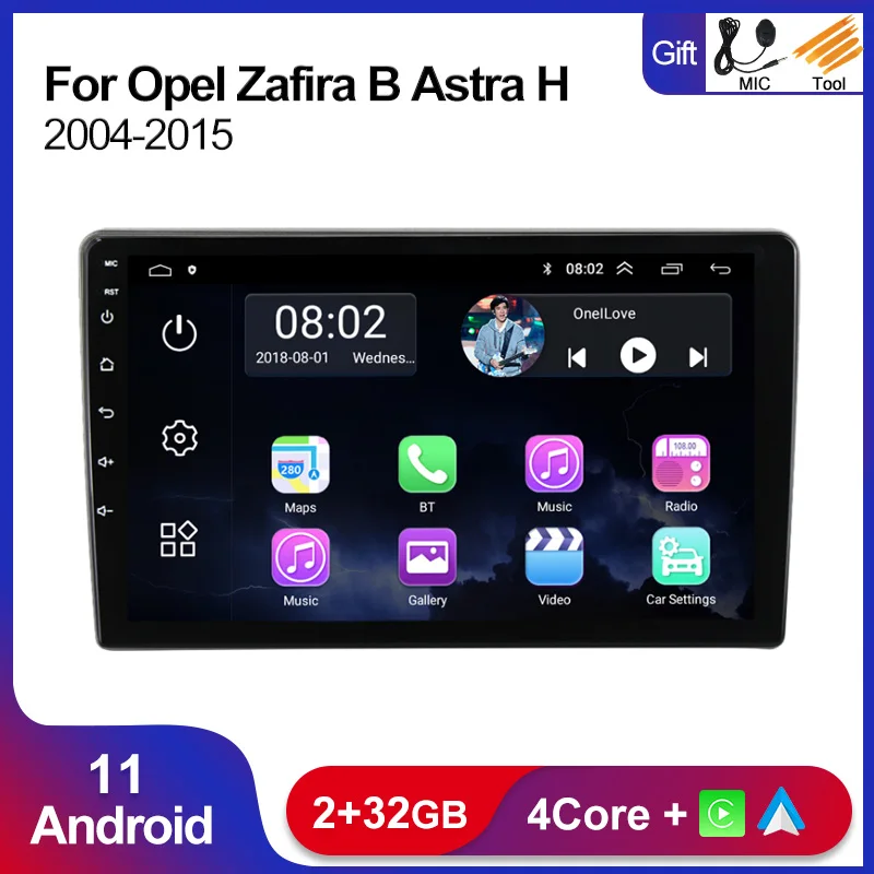 Автомобильный мультимедийный плеер, плеер на Android 11, 2 Гб ОЗУ, 32 Гб ПЗУ, с GPS Навигатором, радио, стереозвуком, RDS для Opel Zafira B Astra H 2005-2014