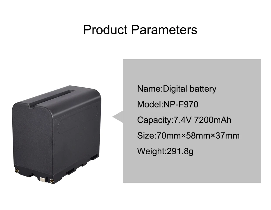 Совместимость с батареей:Sony NP-F770, NP-F550, NP-F530, NP-F750, NP-F730, NP-F950, NP-F960, NP-F975, NP-F970Зарядное устройство совместимо:Sony BC-VM10, BC-VM50, BC-V615Sony NP-F550, NP-F570Sony NP-F750, NP-F770, NP-F730Sony NP-F960, NP-F970, NP-F975, NP-FM50, NP-FM55H, NP-FM500H, NP-QM71,NP-QM91,Sony NP-FM50, NP-FM55H, NP-FM500H, NP-QM71,NP-QM91Sony NP-QM71, NP-QM91, NP-QM71D, NP-QM91DСовместимость с моделями камер/видеокамер:Для SONY:CCD-SC5 CCD-SC55 CCD-SC65 DCR-SC100 CCD-TR910CCD-TR917 CCD-TR940 CCD-TRV101 CCD-TRV15 CCD-TRV215CCD-TRV25 CCD-TRV36 CCD-TRV57 CCD-TRV58 CCD-TRV615CCD-TRV62 CCD-TRV65 CCD-TRV66 CCD-TRV67 CCD-TRV68CCD-TRV715 CCD-TRV72 CCD-TRV75 CCD-TRV81DCR-TRV103 DCR-TRV110 DCR-TRV110k DCR-TRV130DCR-TRV210 DCR-TRV220k DCR-TRV310k DCR-TRV315DCR-TRV320 CR-VX2000 CR-VX2100 CR-VX2100EMVC-FD100 MVC-FD200 MVC-FD5 MVC-FD51 MVC-FD71MVC-FD73 MVC-FD73K MVC-FD75 MVC-FD91 MVC-FD92MVC-FD95 MVC-FD97 и многое другоеОсобенности:1. Литий-ионные аккумуляторы премиум класса2. Высокая плотность энергии, долгий срок службы, без памяти3. Дополнительная мощность, больше снимков для ваших камерПосылка включает в себя: (зависит от того, какой набор вы выбираете)4x NP F970/960 батареи дисплея питания1x быстрое двойное зарядное устройство с ЖК-дисплеем