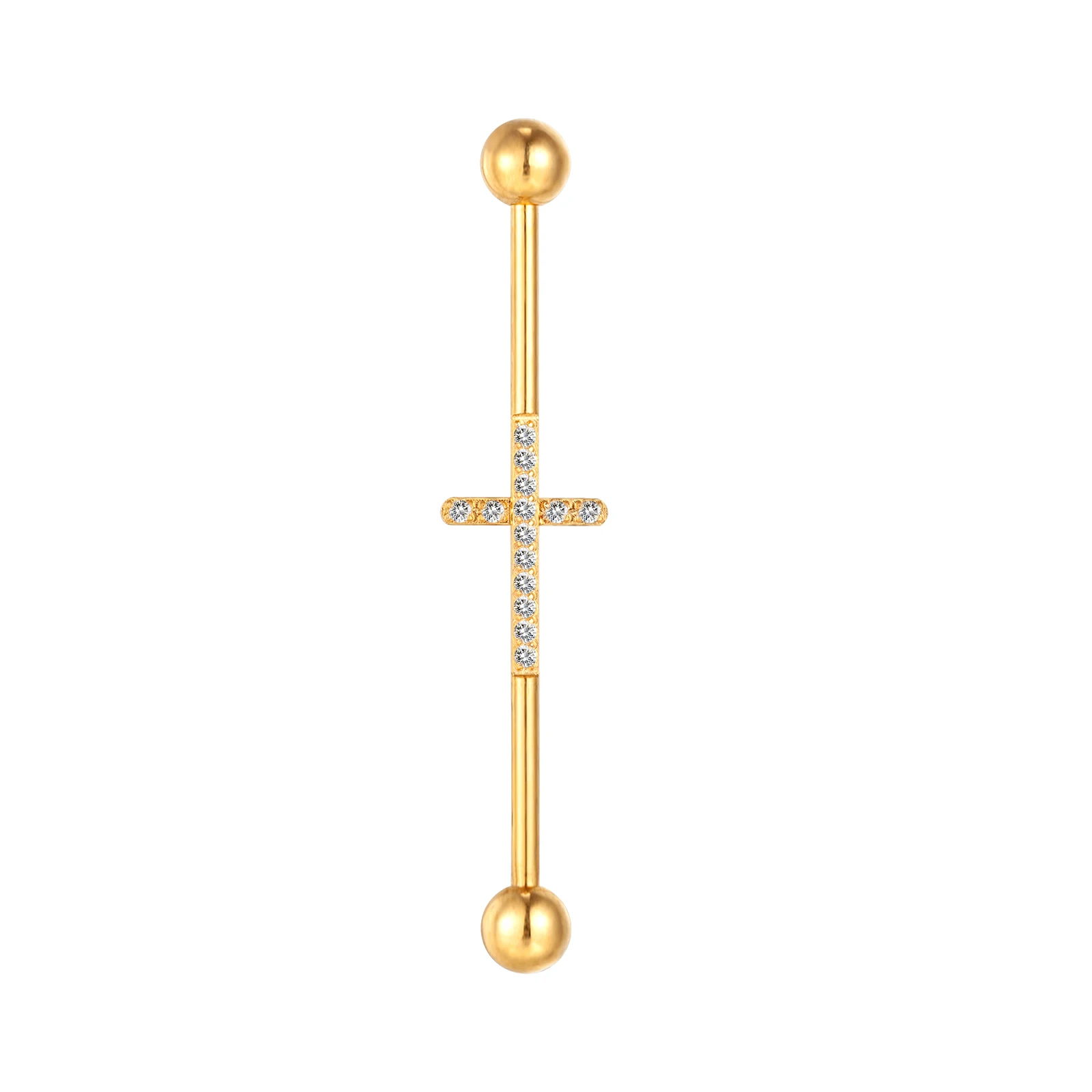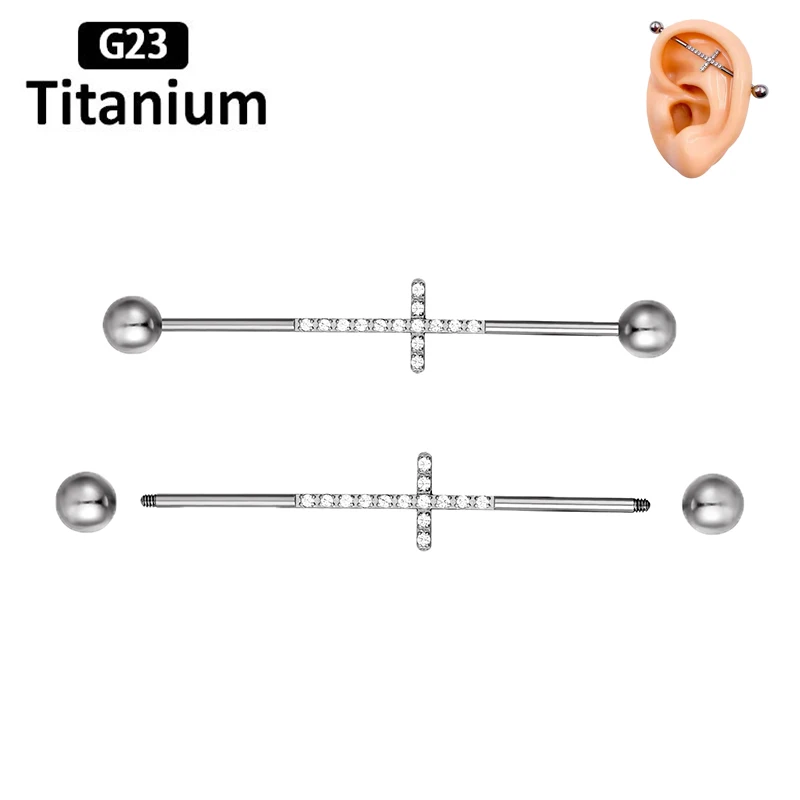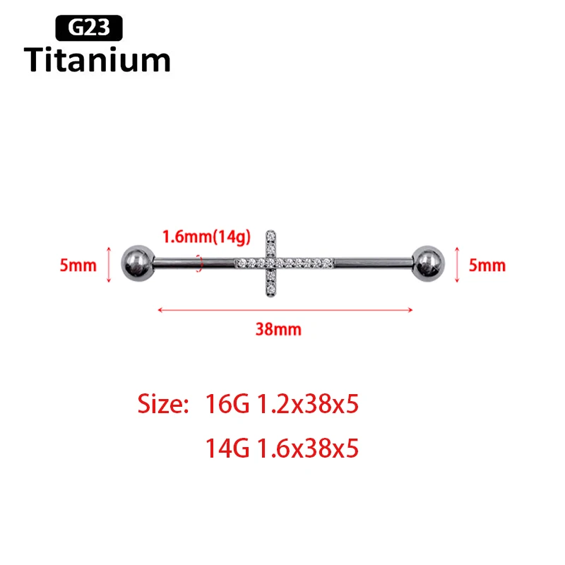1 шт., пирсинг для ушей, крест, CZ, промышленный пирсинг, G23, титан, 38 мм, прямой стержень, хрящи, серьги, 16 г, 14 г, ювелирные изделия для штанги