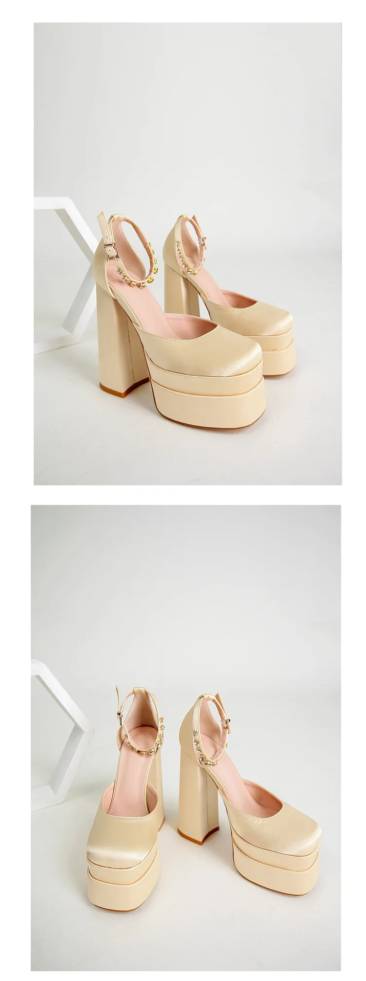 Элегантные женские свадебные туфли-лодочки на Высоком толстом каблуке; Женская обувь для невесты