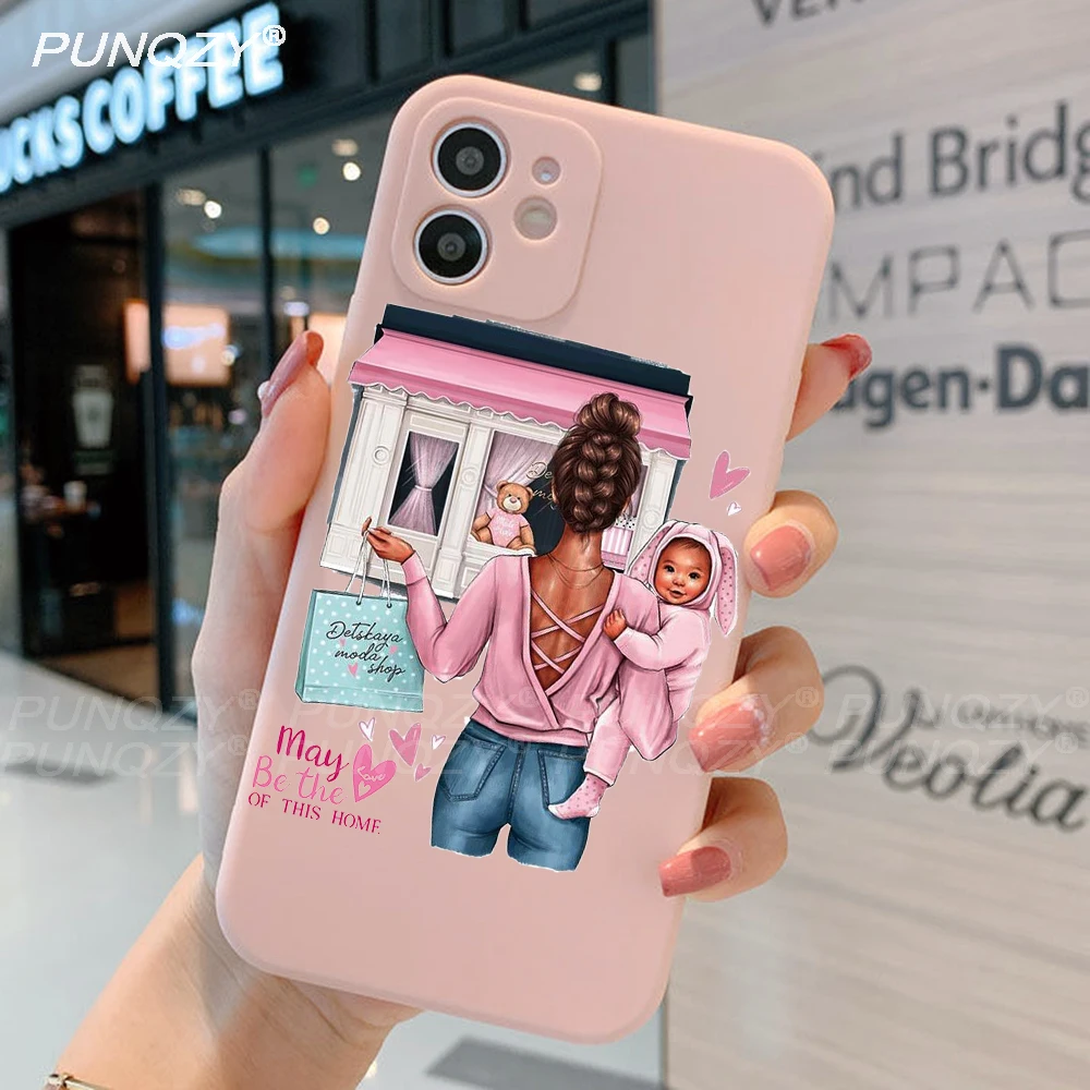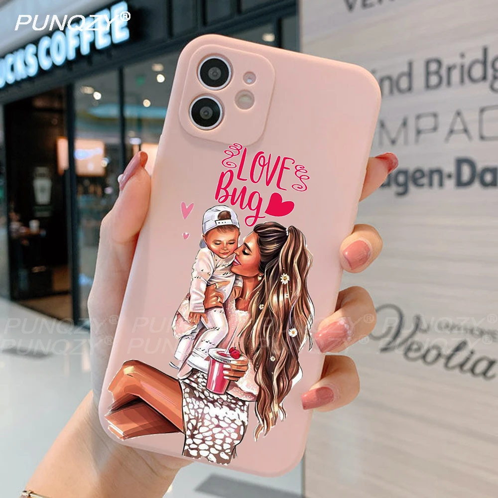 Милый чехол PUNQZY для телефона мама девочка Мальчик и мама для iPhone 13 PRO MAX 12 11 XR 7 6 8 Plus X XS праздничный подарок мягкий чехол из ТПУ