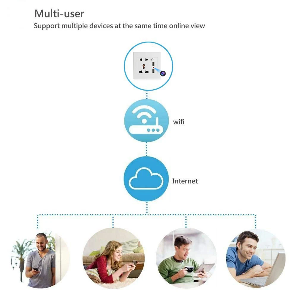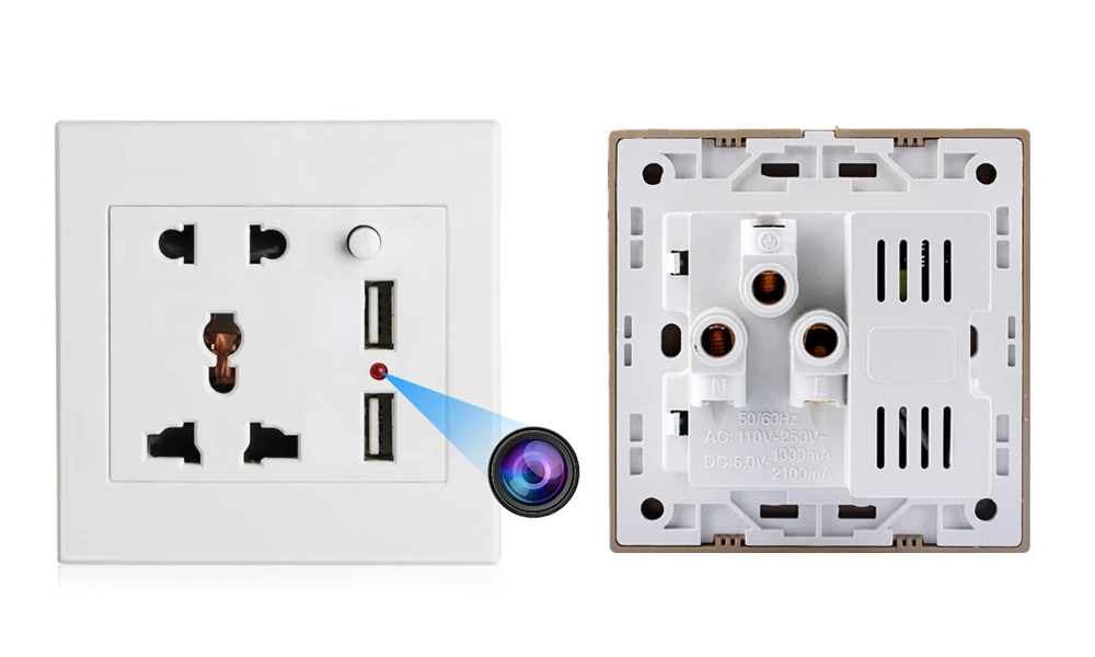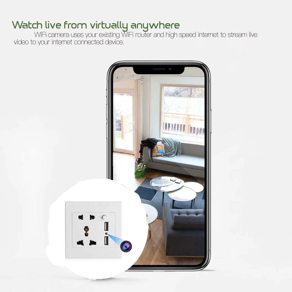 Настенная розетка HD 1080P с поддержкой Wi-Fi и USB-портом для зарядки