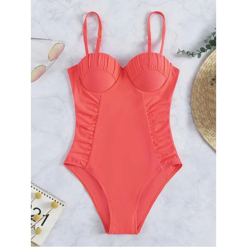 Женский купальник 2022 слитный купальник на косточках с морщинами сексуальный стиль на бретельках Новое Женское пляжное боди Женский купальный костюм