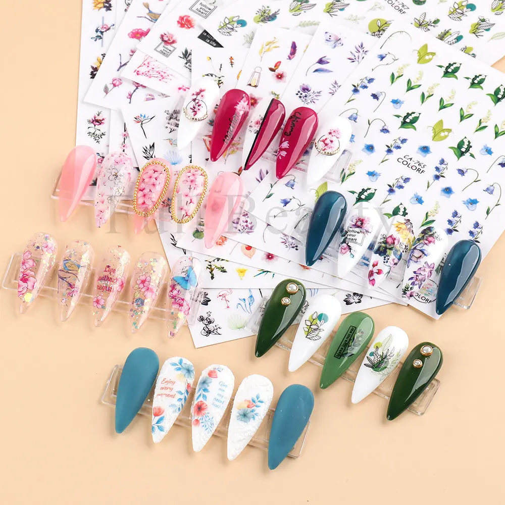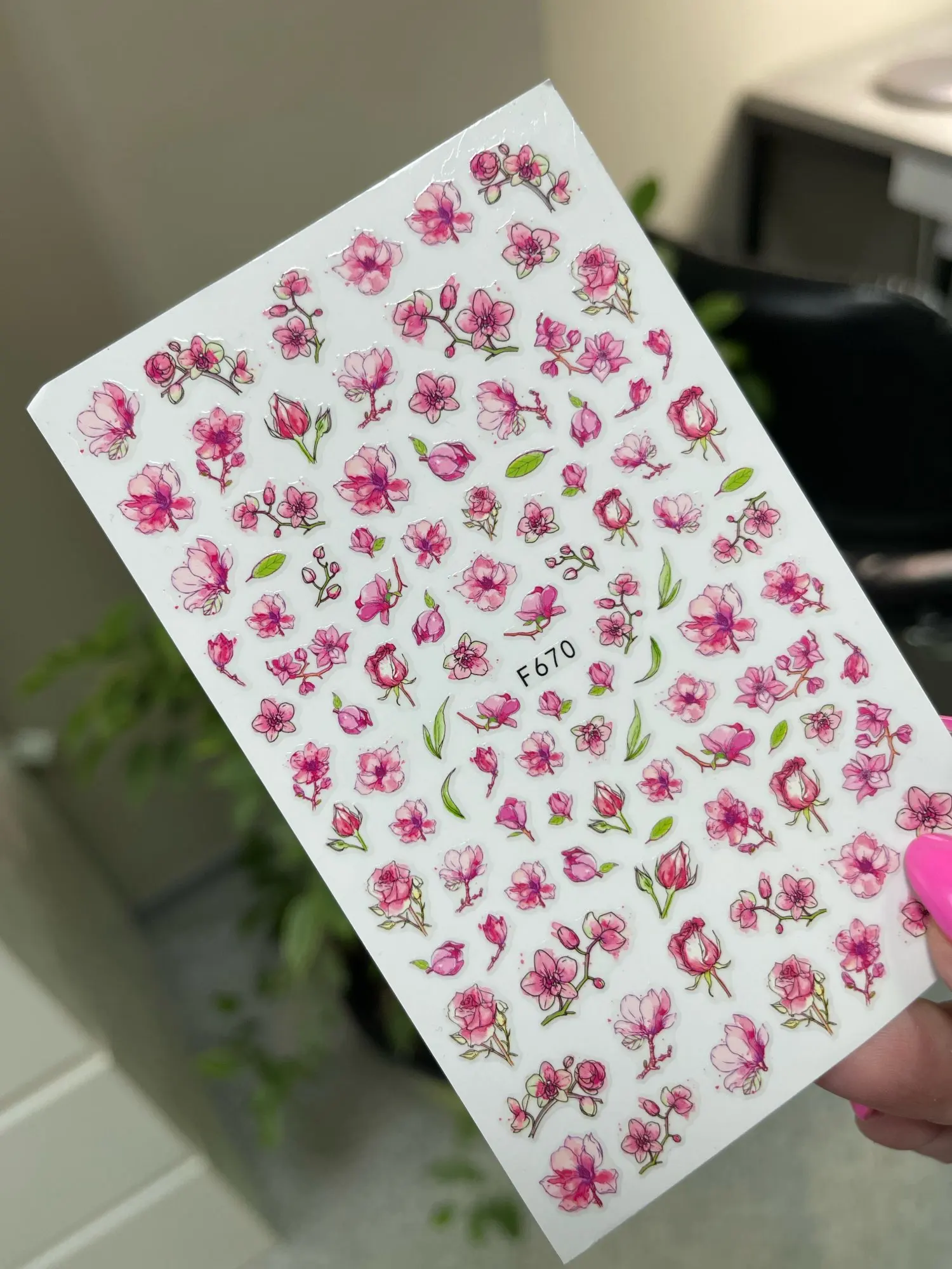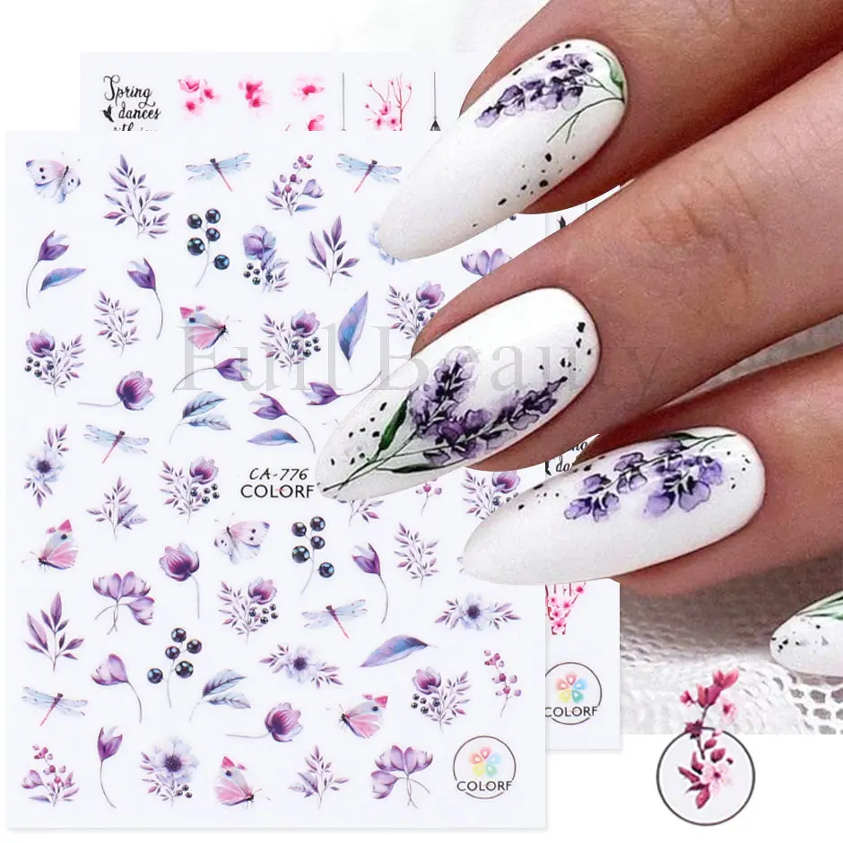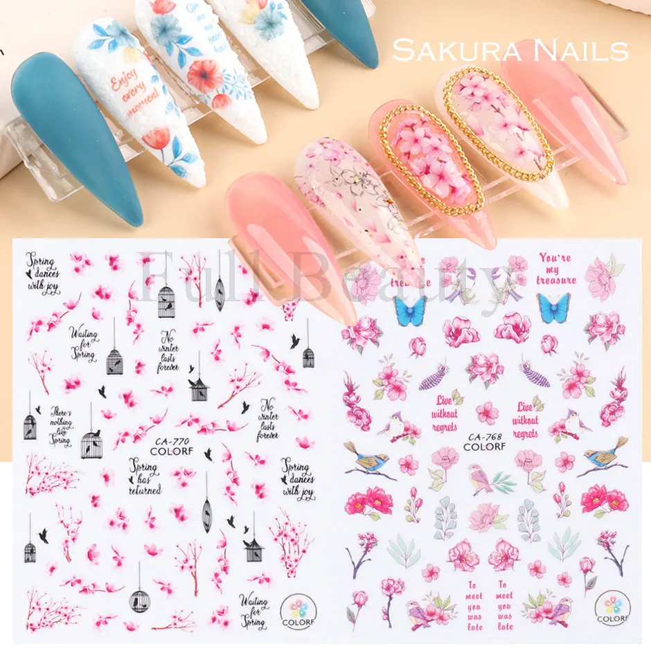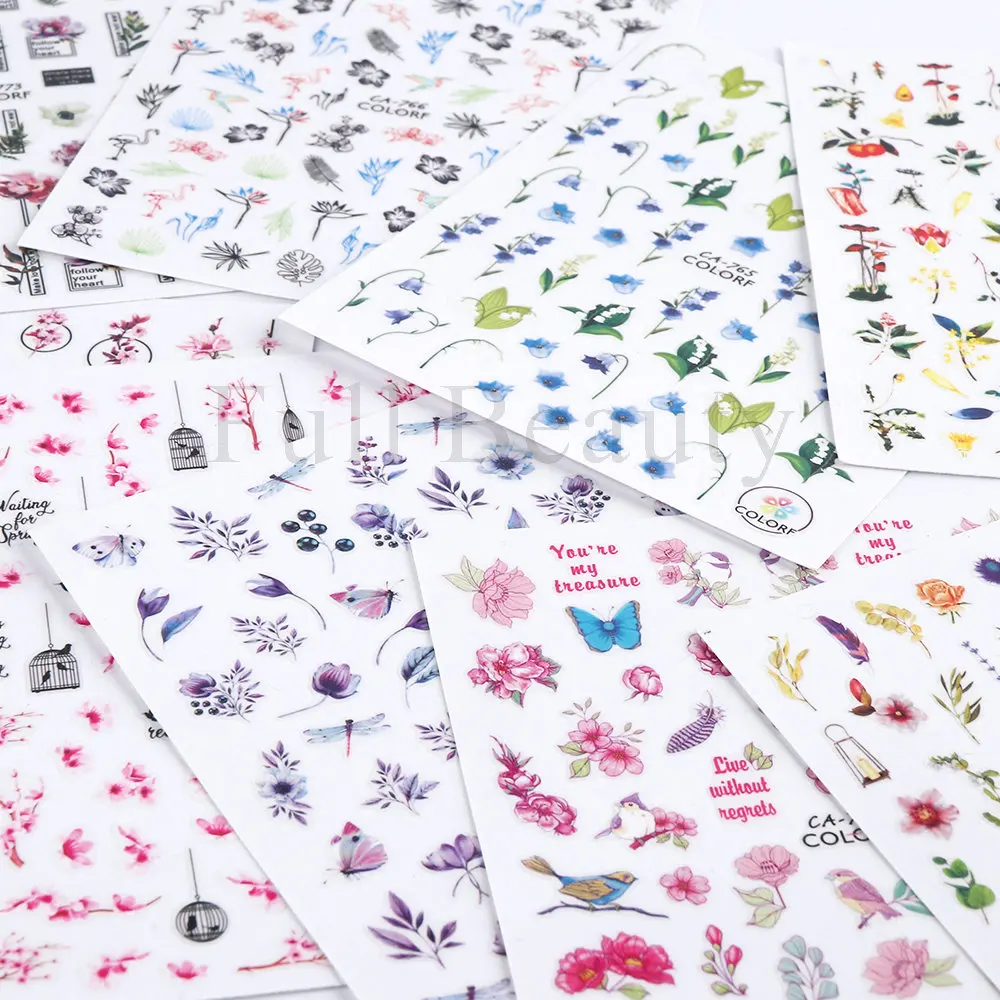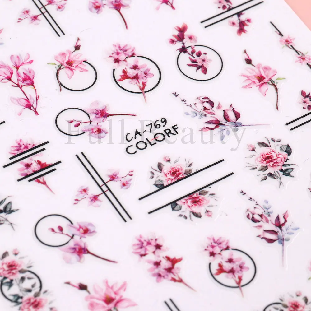 3D наклейки для ногтей цветок Розовый Фиолетовый Вишневый цвет наклейки для дизайна ногтей цветочный лист весна слайдеры маникюр декор советы CHCA764-776