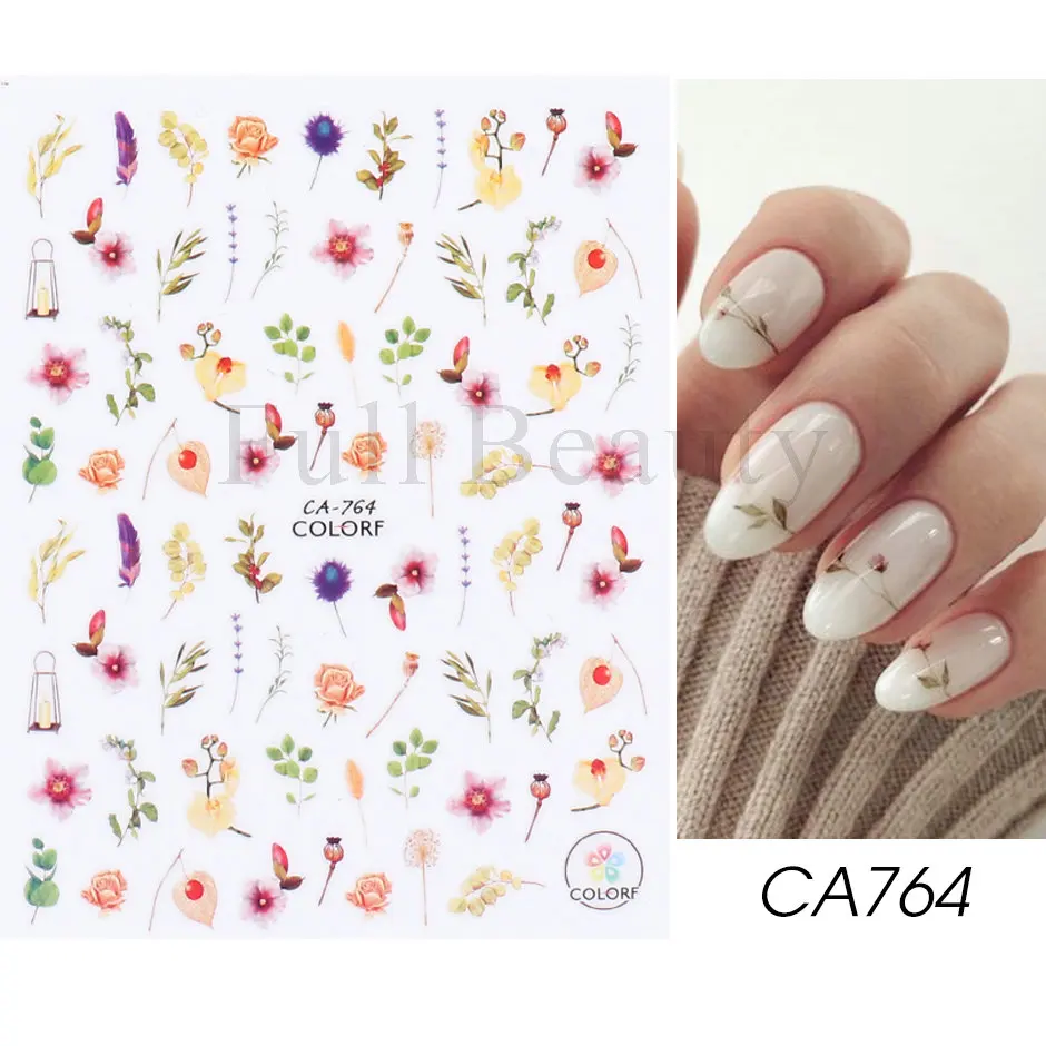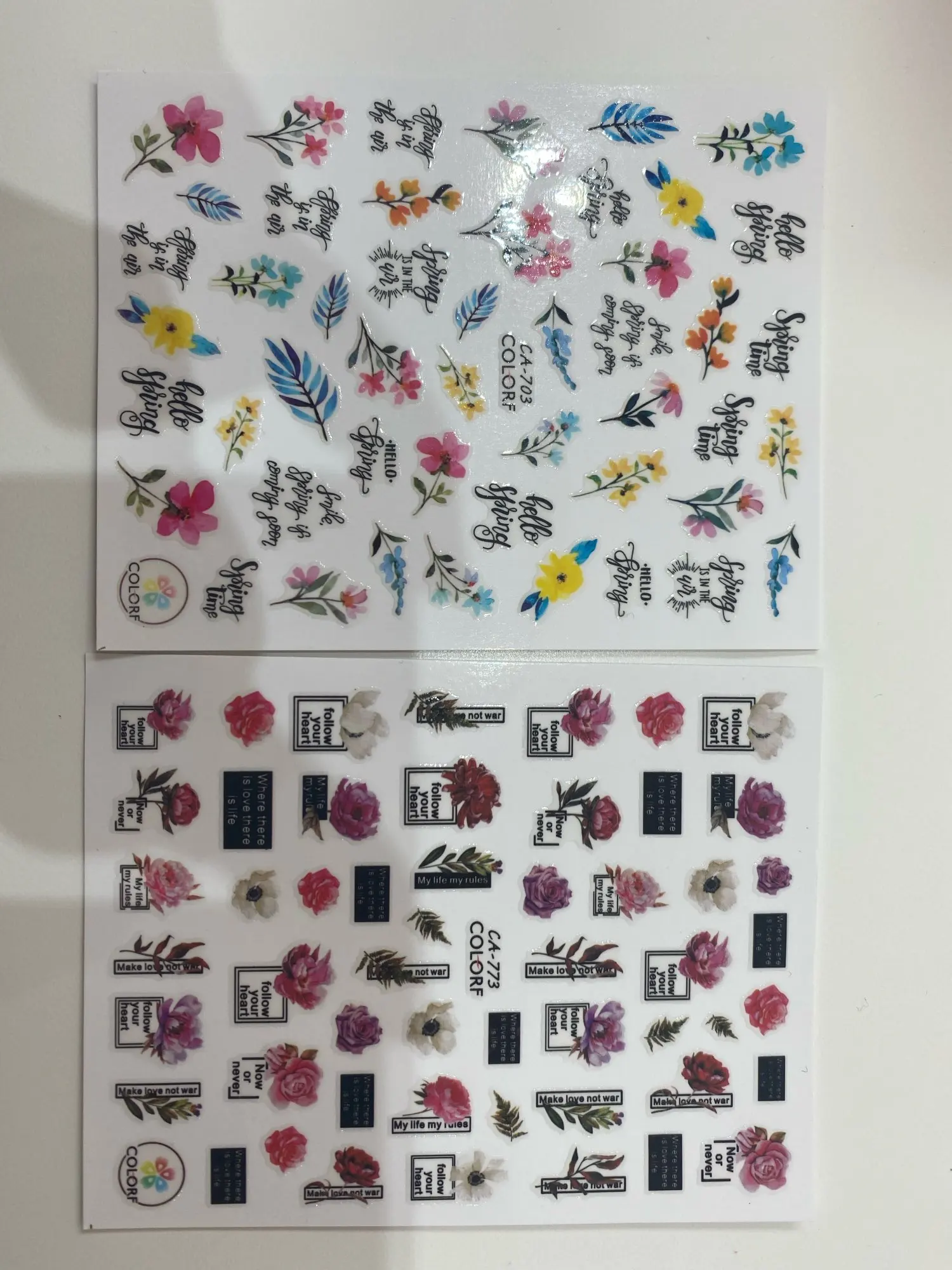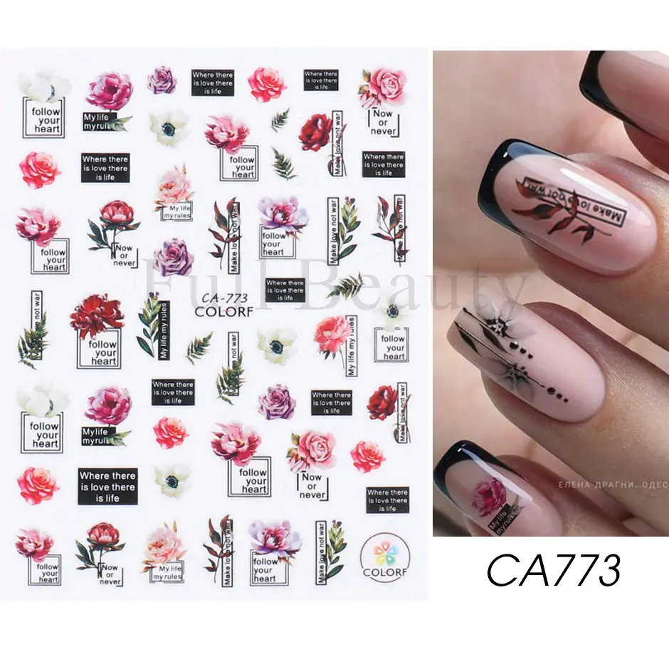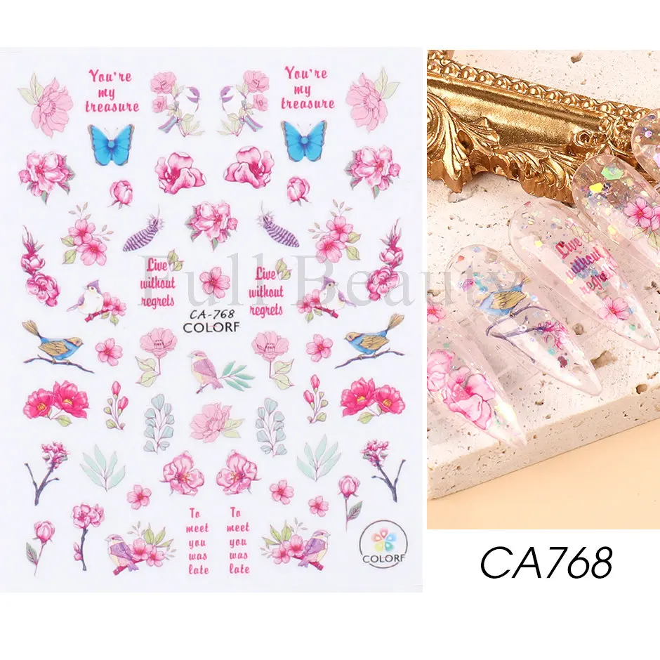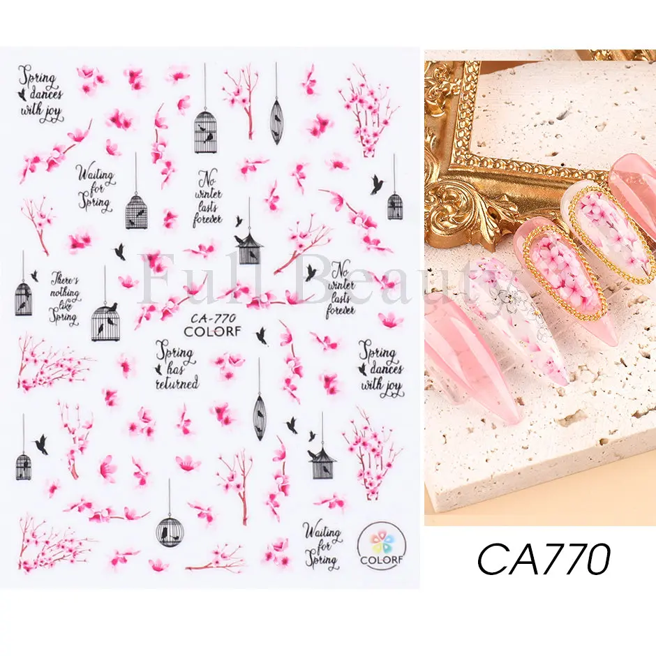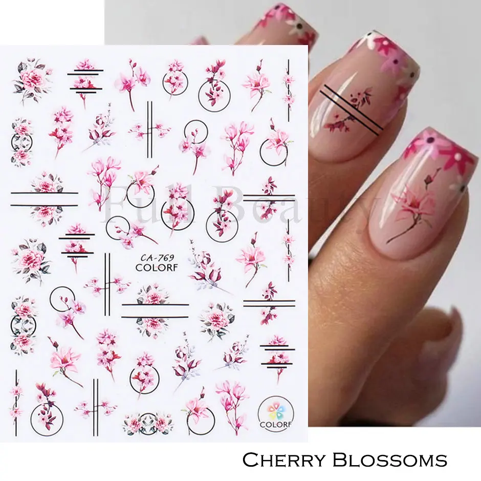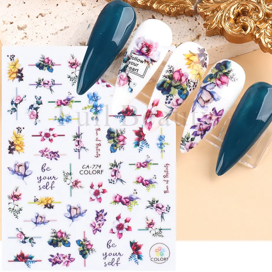 3D наклейки для ногтей цветок Розовый Фиолетовый Вишневый цвет наклейки для дизайна ногтей цветочный лист весна слайдеры маникюр декор советы CHCA764-776