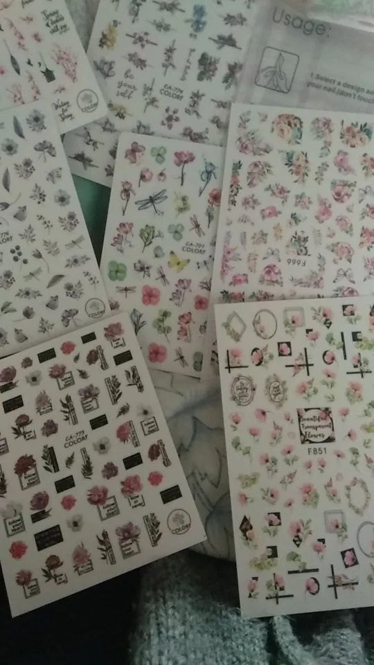 Заказ получен во Франции за 12 дней. Получен в хорошем состоянии, не поврежден при транспортировке. Как на фотографии очень красивые рисунки и красивые цвета. Хороший размер для ногтей, даже если они не очень длинные. Растительные наклейки, без облегчения. Я еще не проверял их. Я доволен своей покупкой и продавцом, который отправил товар хорошо и быстро. Thank you very much to him.