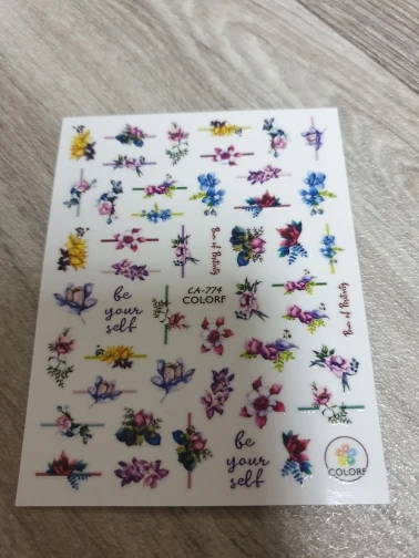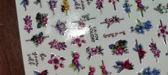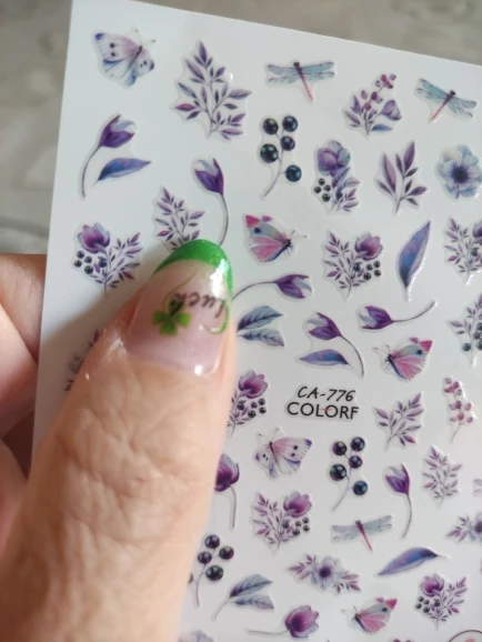 beautiful stickers, colour a bit different, close to darker shade but still pretty bright. for a small nails, mine have big natural arch and may be these stickers are not suitable for all my nails.