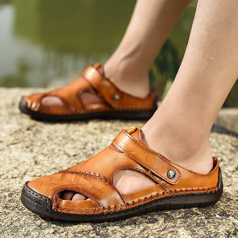 Мужские кожаные сандалии, Классические римские сандалии, мягкие тапочки, Мокасины, уличная пляжная обувь, искусственная кожа, 38-48, лето