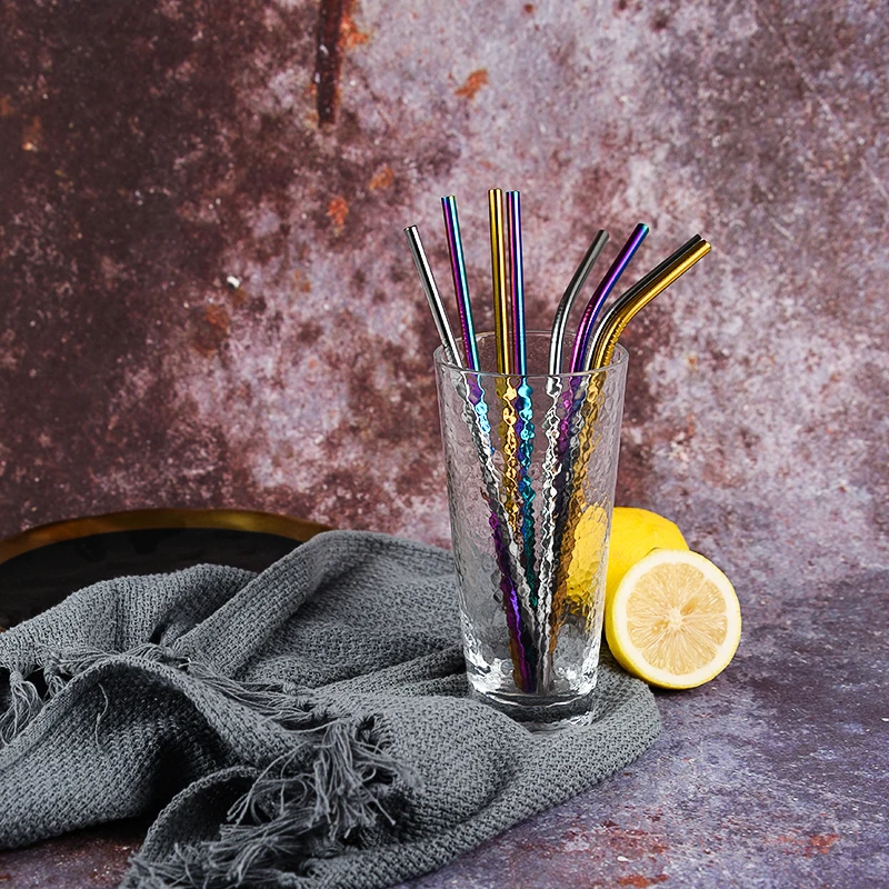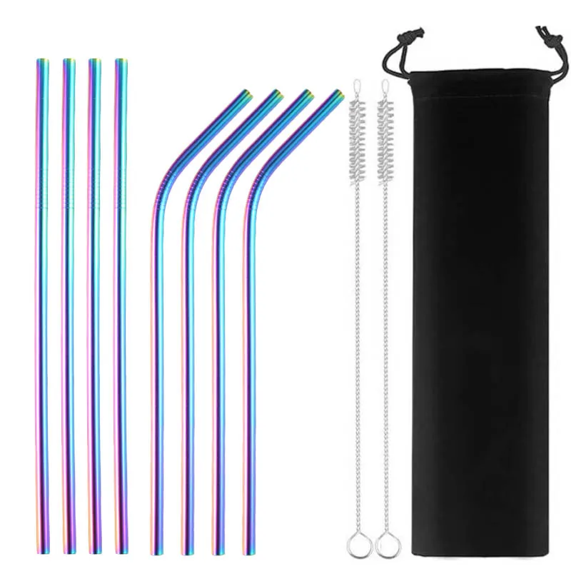 Многоразовая Питьевая металлическая соломинка из нержавеющей стали Boba Bubble чайные соломинки для смузи, прямые согнутые разноцветные трубки, силиконовые наконечники, сумка для кистей
