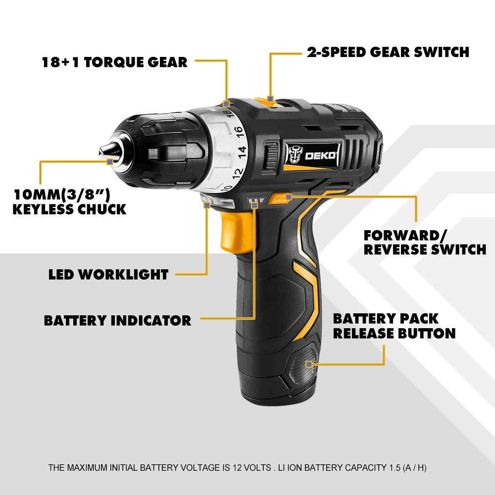 Электрическая дрель DEKO GCD12DU3, перфоратор, литий-ионная батарея, 1,5 АЧ, DC