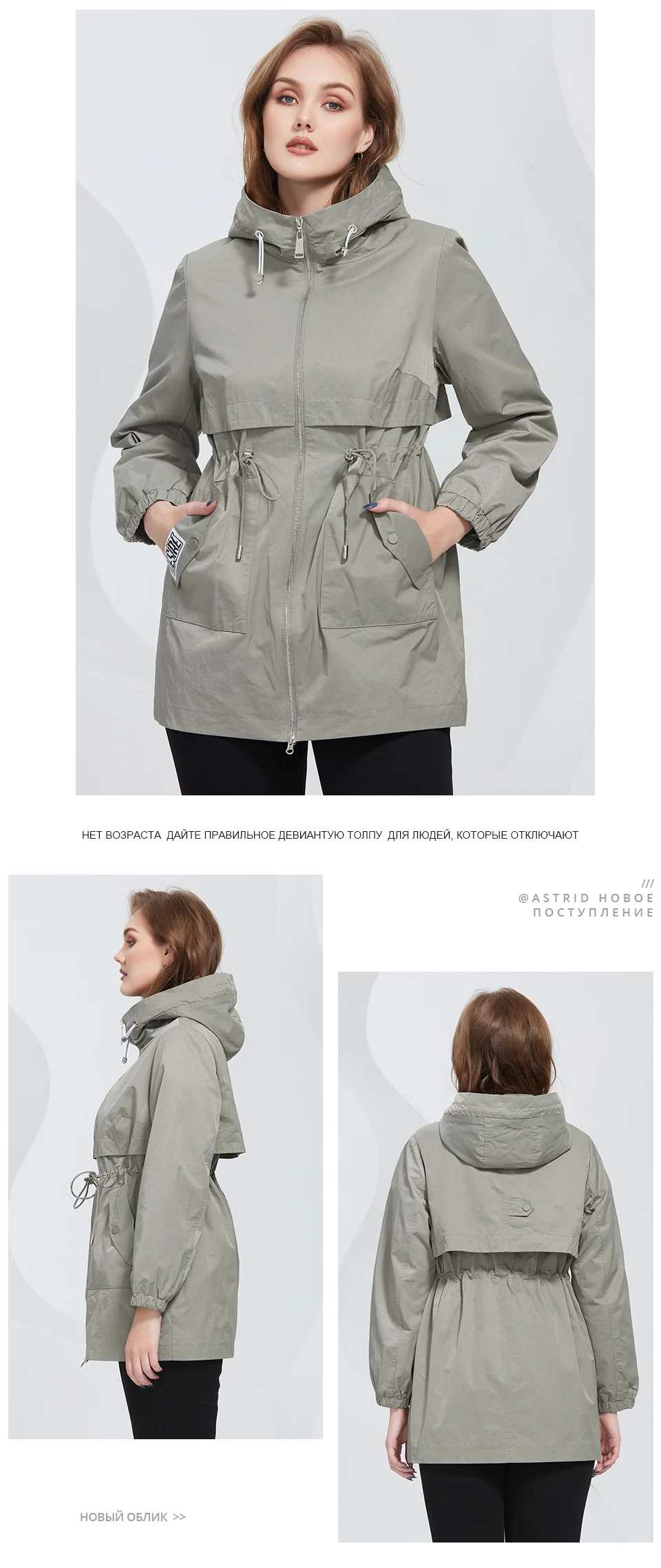 Astrid Новый Женский Тренч, Женская куртка, негабаритная ветровка с капюшоном, повседневное пальто, женская верхняя одежда, весна 2022, AS-10157