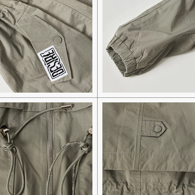 DecoratePockets, zipper, hood, drawstring waist, patch, elasticated cuffs