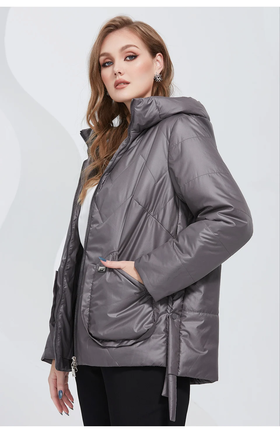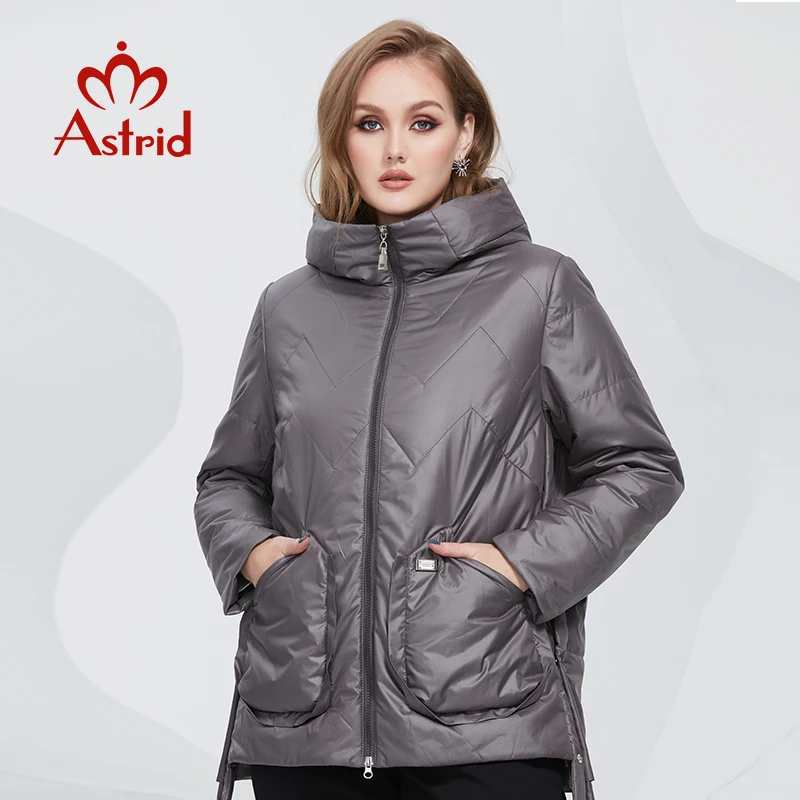 Astrid 2022 весенние женские парки больших размеров Короткие серые стеганые пуховики с капюшоном Женская куртка модная верхняя одежда стеганая AM-10075