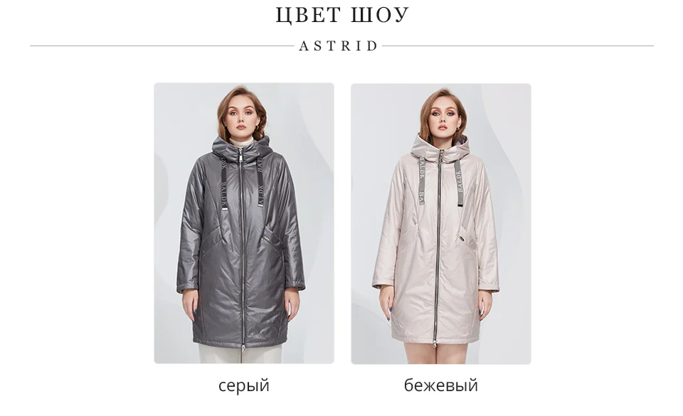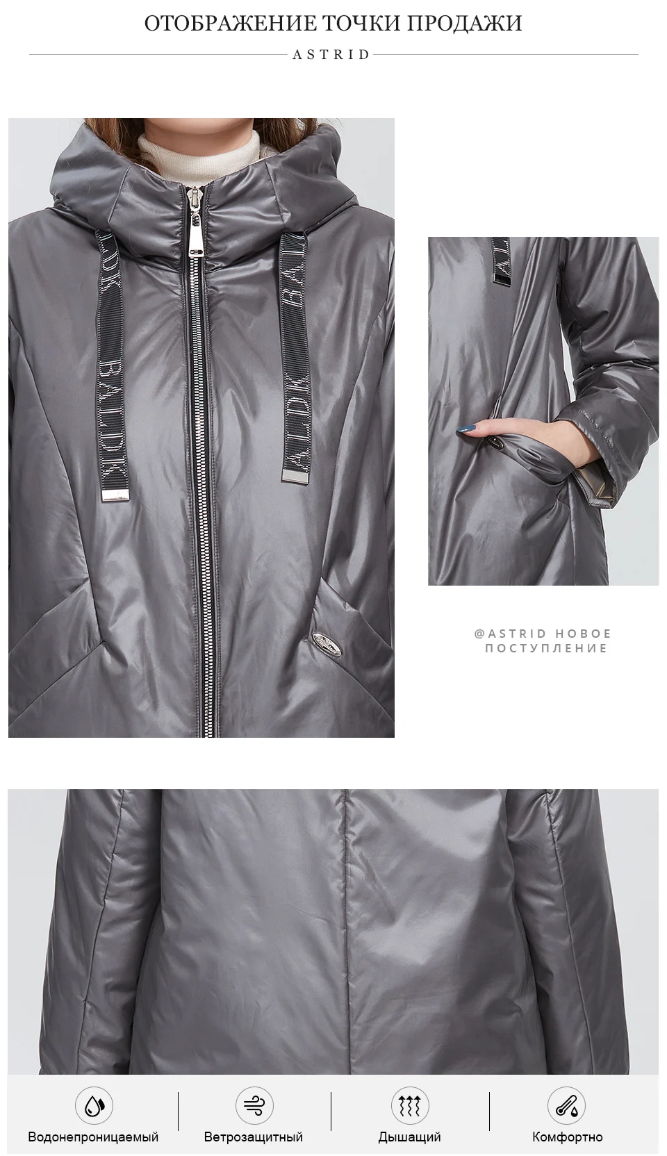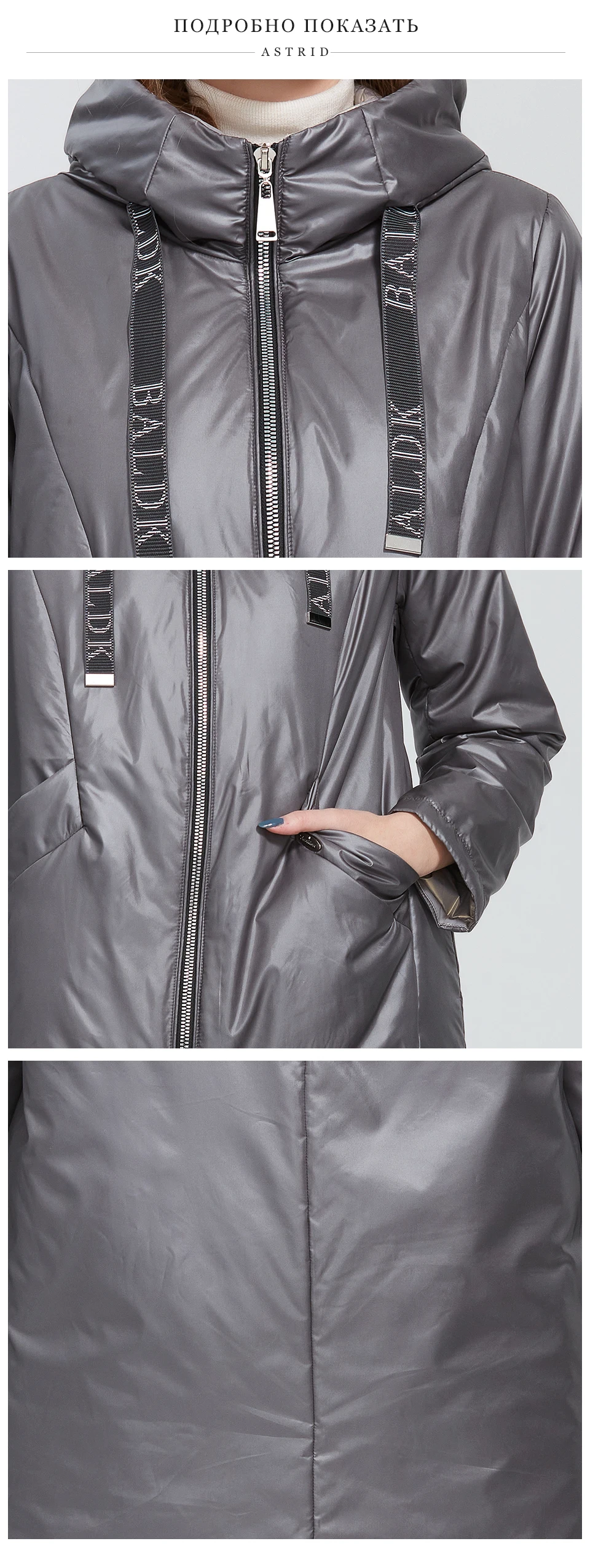 Astrid 2022 весенние пальто женские парки длинная теплая глянцевая ткань стеганая Одежда Женская куртка Верхняя одежда с капюшоном карманы AM-10096